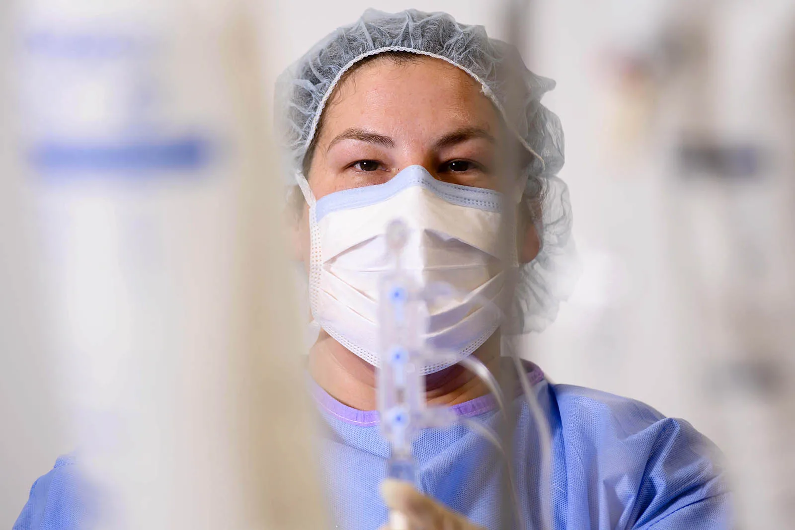 Shannon, who studies cardiovascular intervention, practices preparing for heart catheter surgery.