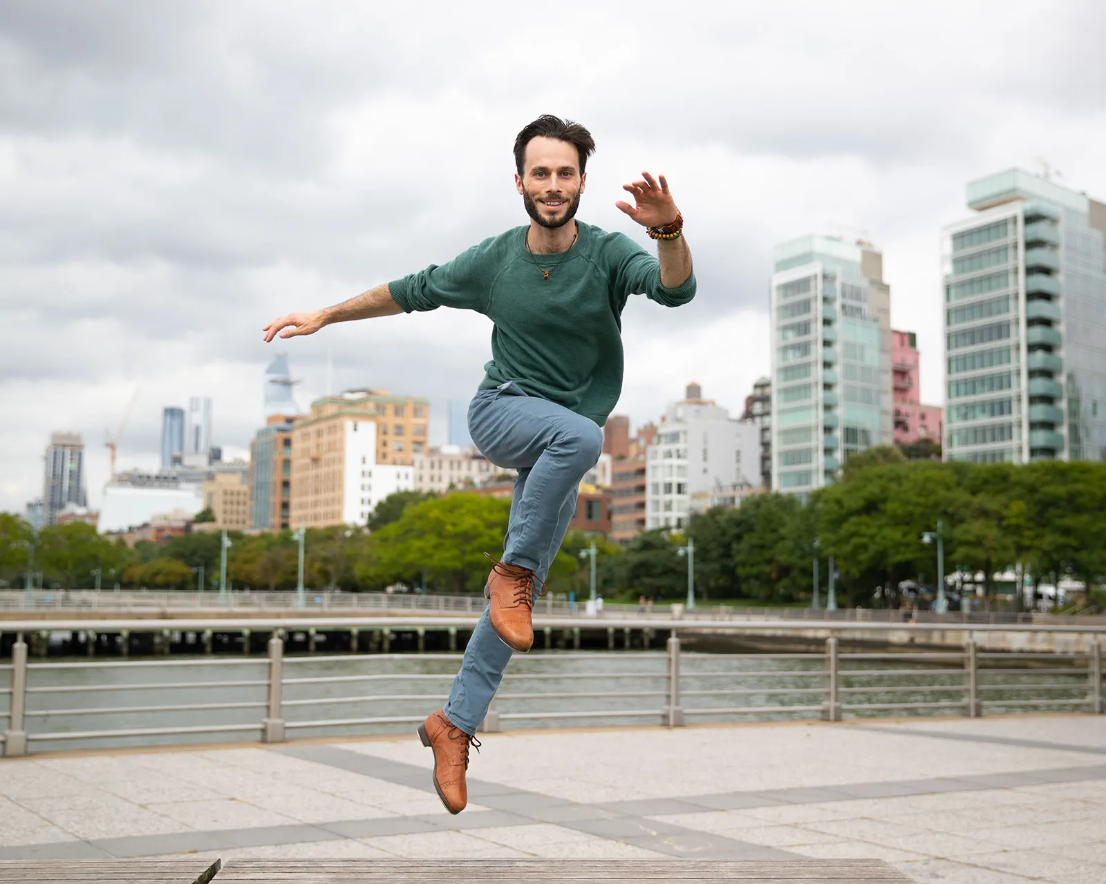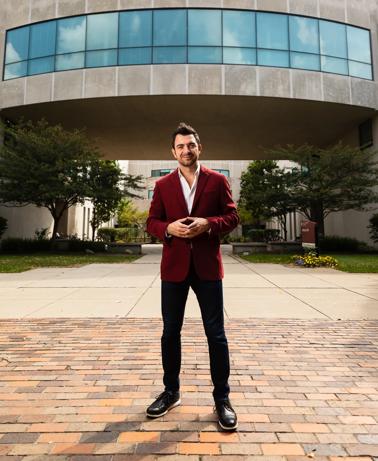 Alex MacDonald, a world-renowned tap dancer and alumnus, poses for a photo to run with a story on his post-graduation successes.