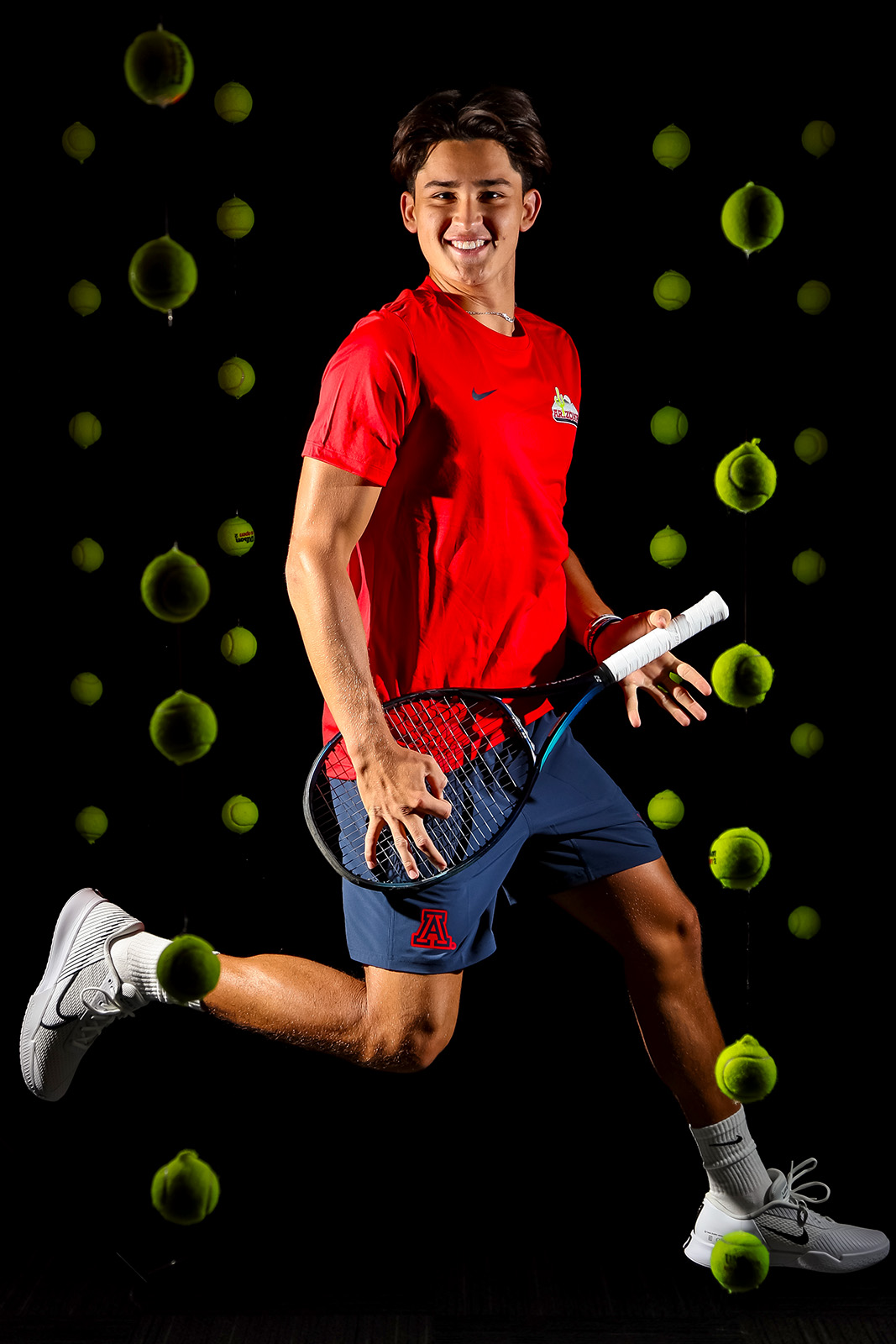 TUCSON, ARIZ. -- Arizona's Eric Padgham poses during Arizona Men’s Tennis creative photoshoot at McKale Memorial Center Sept. 10, 2024.
