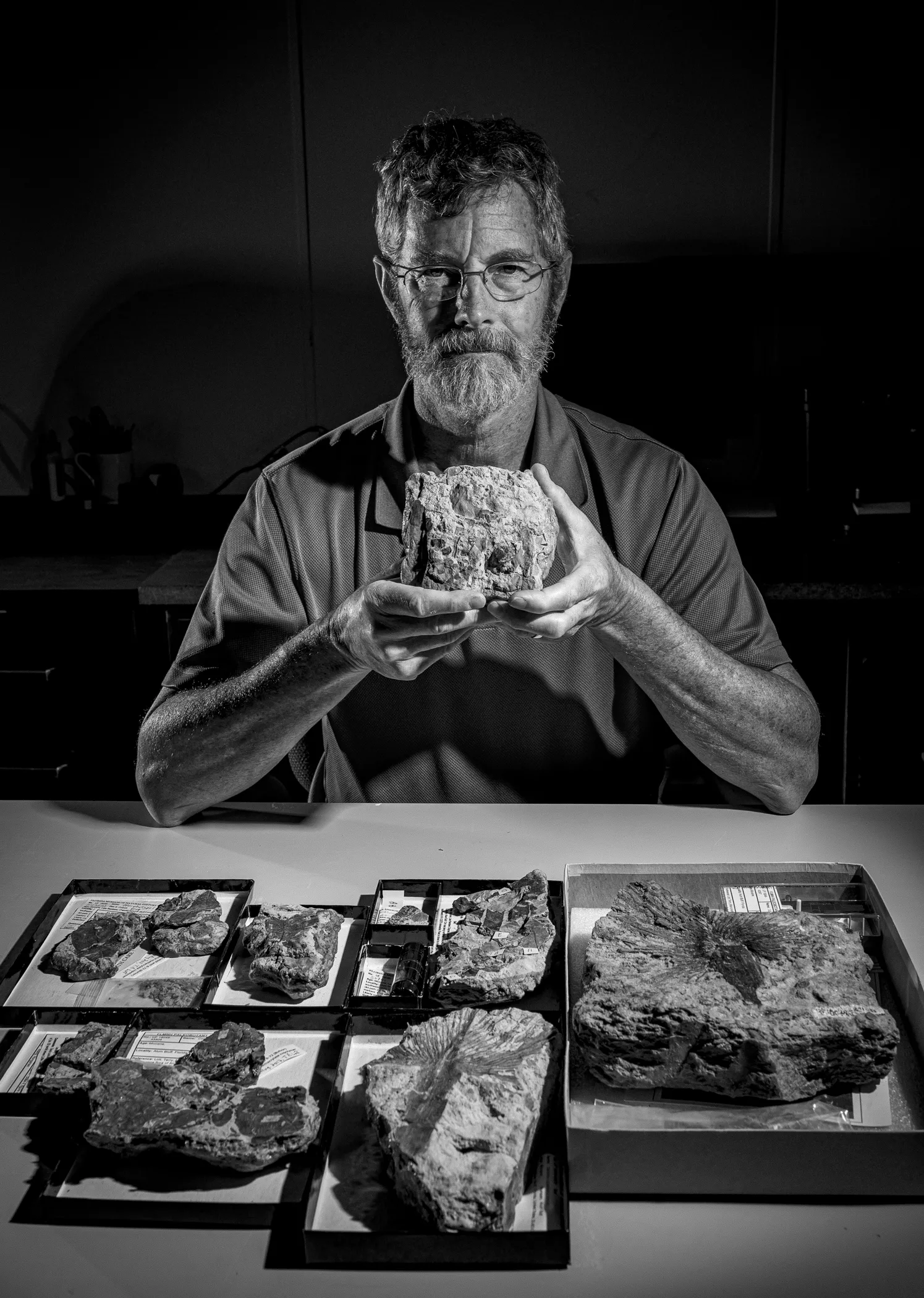 Some people love plants. Some people love fossils. This guy loves both. Terry Lott, UF Florida Museum paleobotanist, displays a collection of plant fossils from the Apalachicola River. These plant fossils provide a window into the flora of Florida 16million years ago.