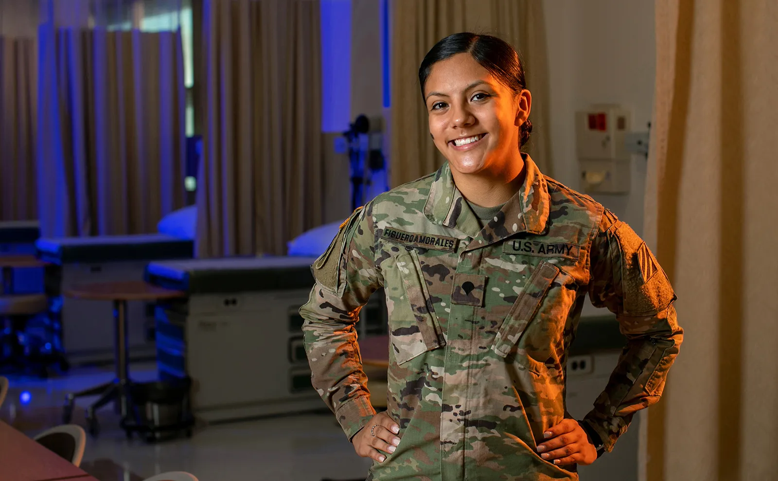 Kennesaw State University student Johana Figueroa Morales is a combat medic with the National Guard is shown in a nursing lab in the Prillaman Health Sciences at Kennesaw State University Thursday August 22, 2019. Morales took classes at KSU last fall, but then took the spring 2019 semester off because she was on a deployment to Afghanistan and Kuwait as a combat medic with the National Guard.