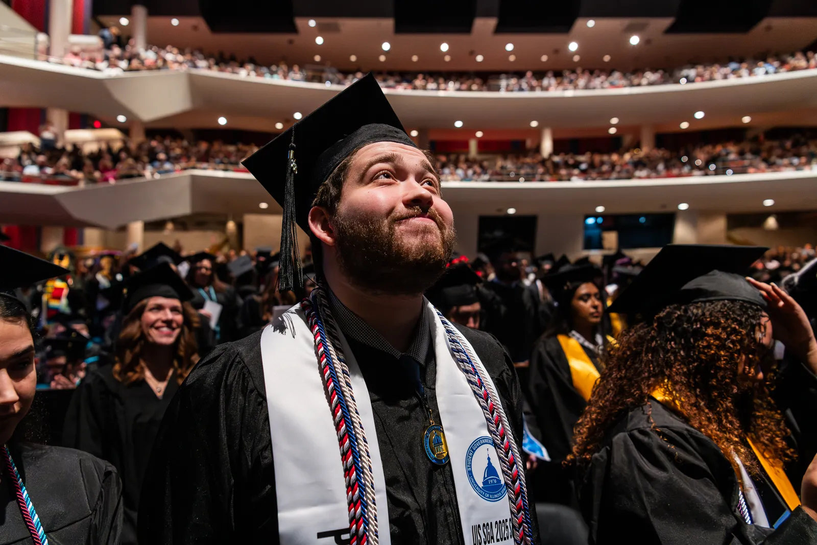 Graduate Chris Camp takes in all of the commencement experience as his four years of hard work culminates in a Bachelor's degree.
