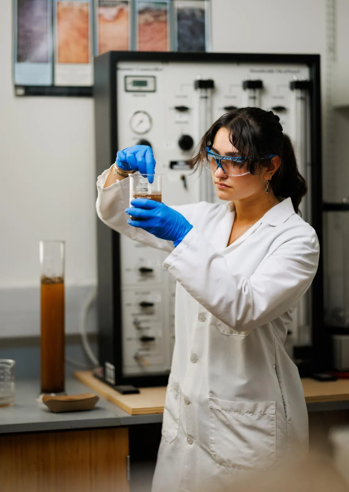 Environmental earth and soil sciences student Nabila Wildman processes some soil samples in the soil sciences lab on campus.