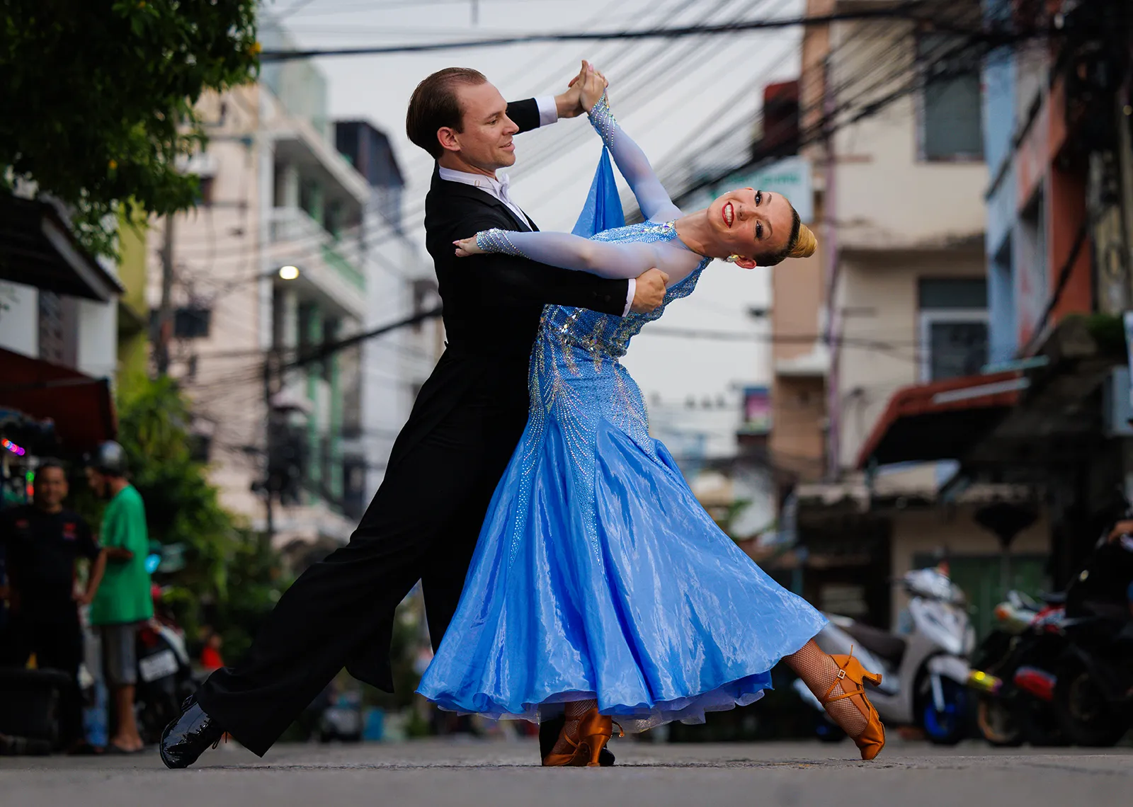 Portrait of Ballroom Dancers on the streets of Bangkok, Thailand.