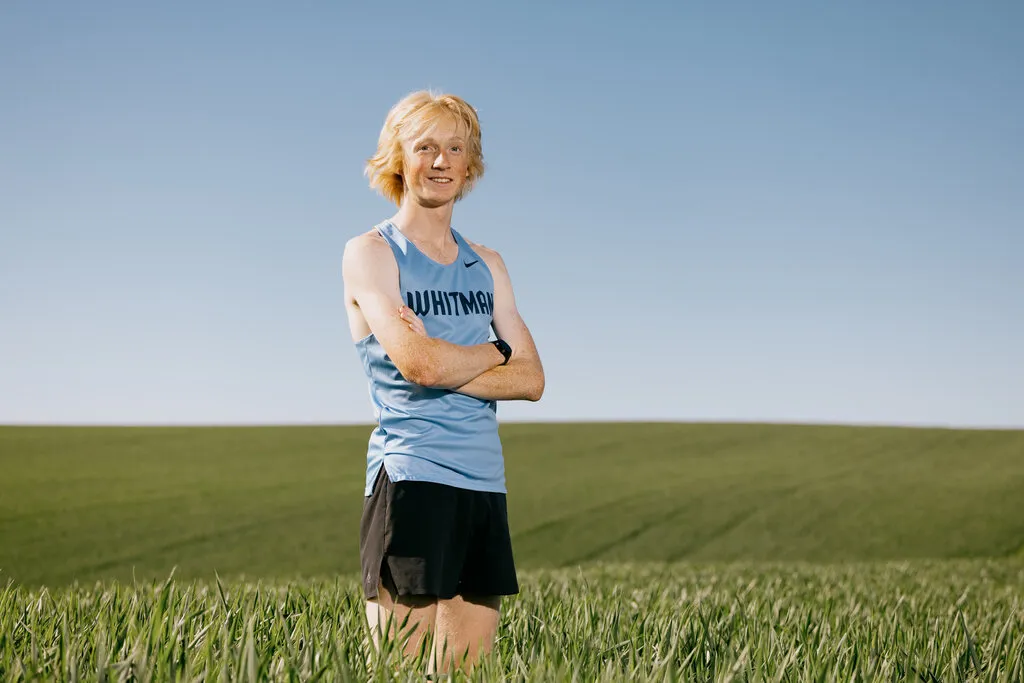 Sophomore Jack McManus poses for a portrait in a wheat field in Walla Walla, Wash., on May 5, 2025, for an upcoming student spotlight.