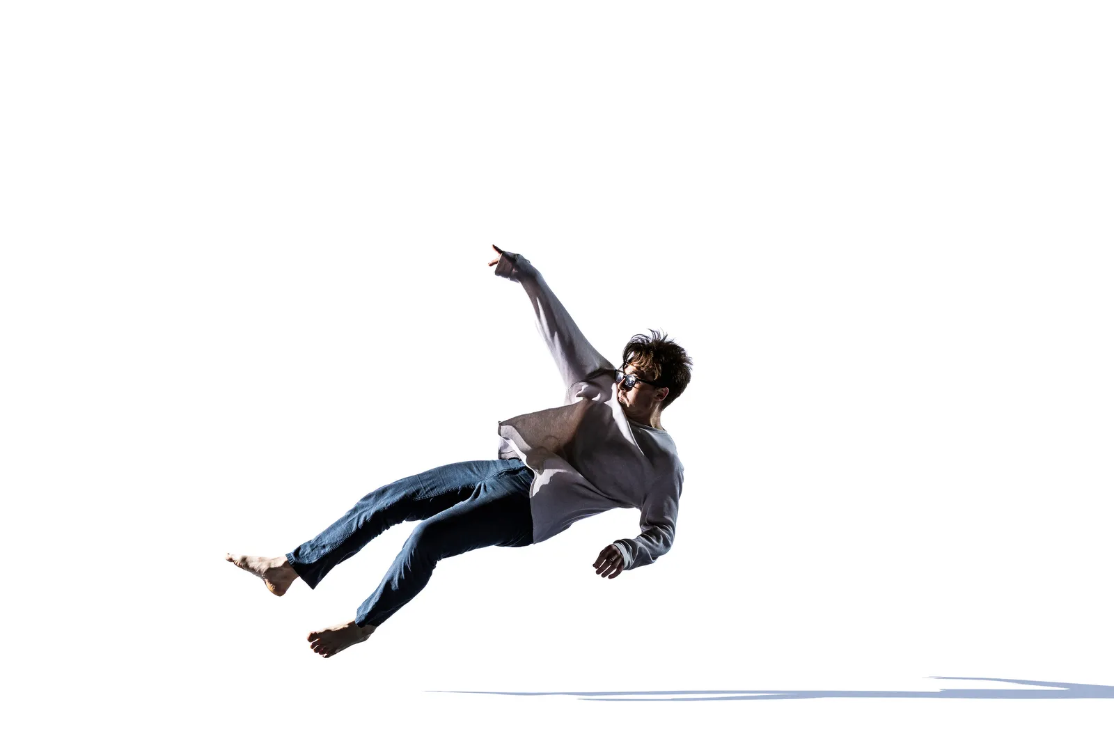 Contemporary dance theater student, Benjamin Raymant, jumps back to pose during "falling" themed photo shoot.