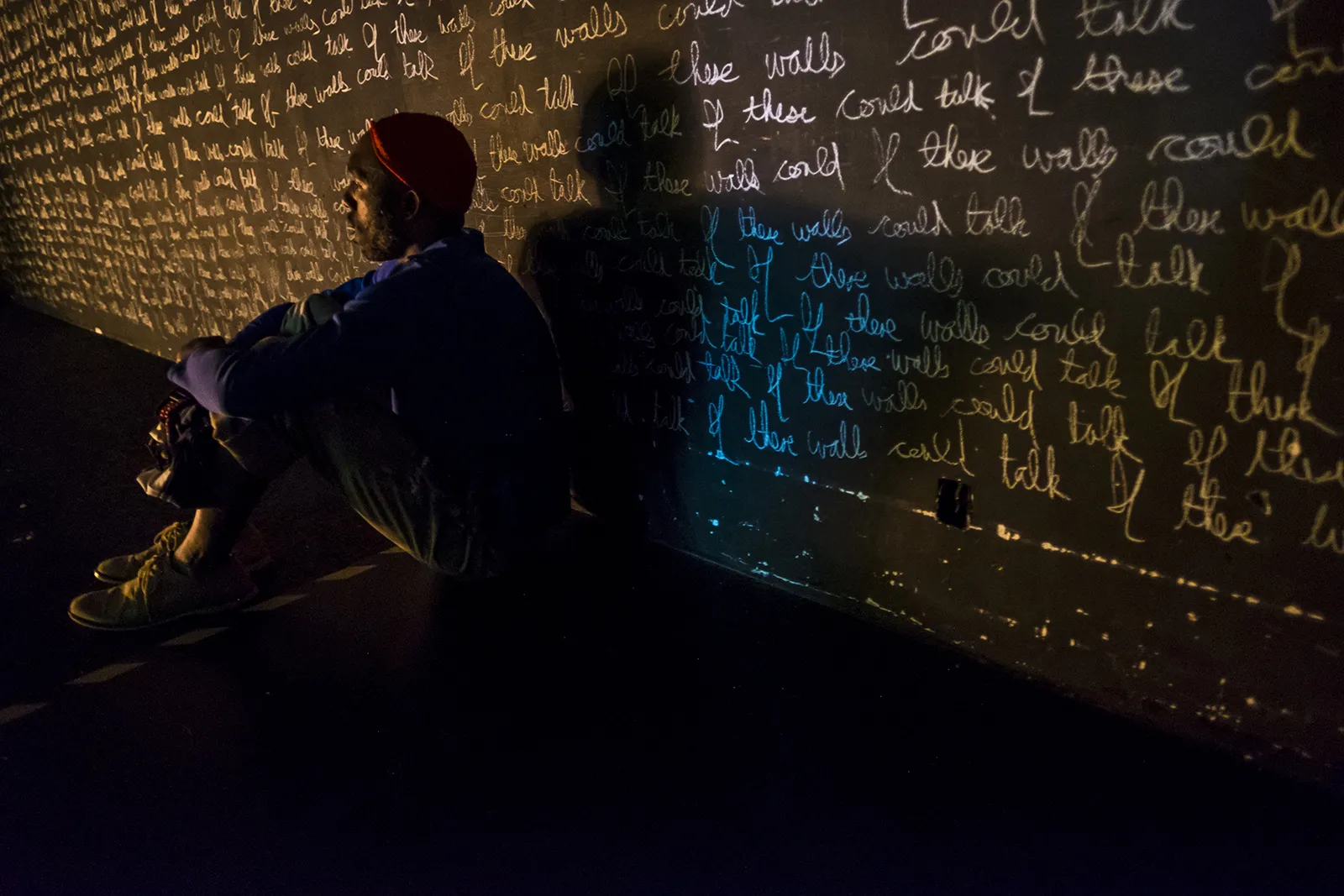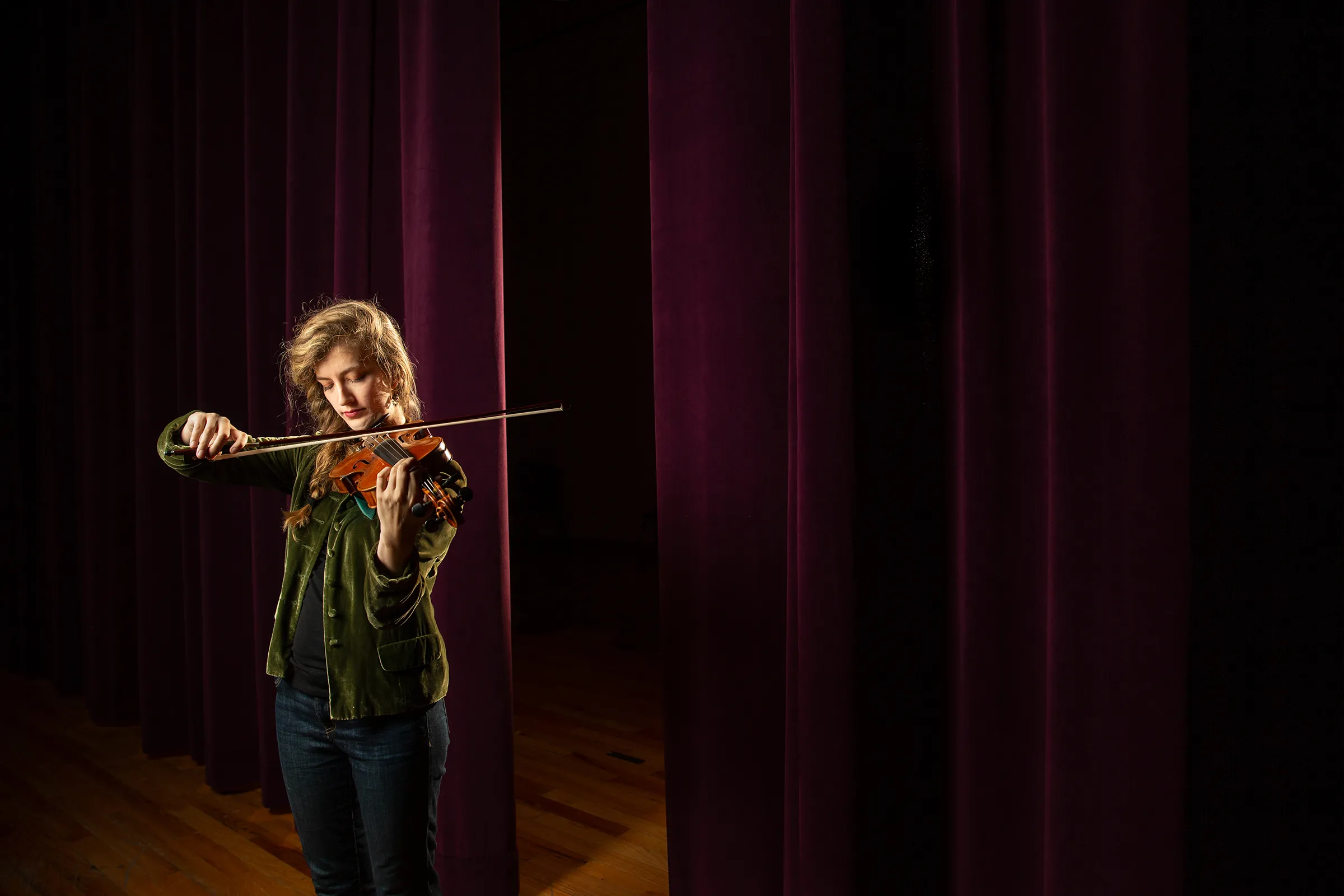 Barber, a composer/performer from Philadelphia, watches from the side of the stage and waits for his part as other artists rehearse in the Wall Theatre.