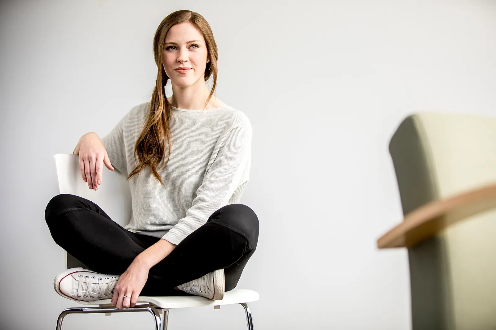 A student sits for. a portrait in a window light studio.
