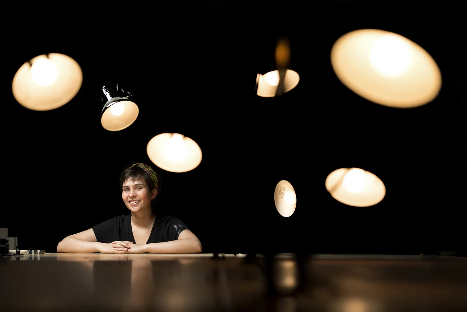 Artist alumna Chloe Deaton, who won the Whitbeck award and does metalworking and stop-motion animation, poses in the metalwork classroom.