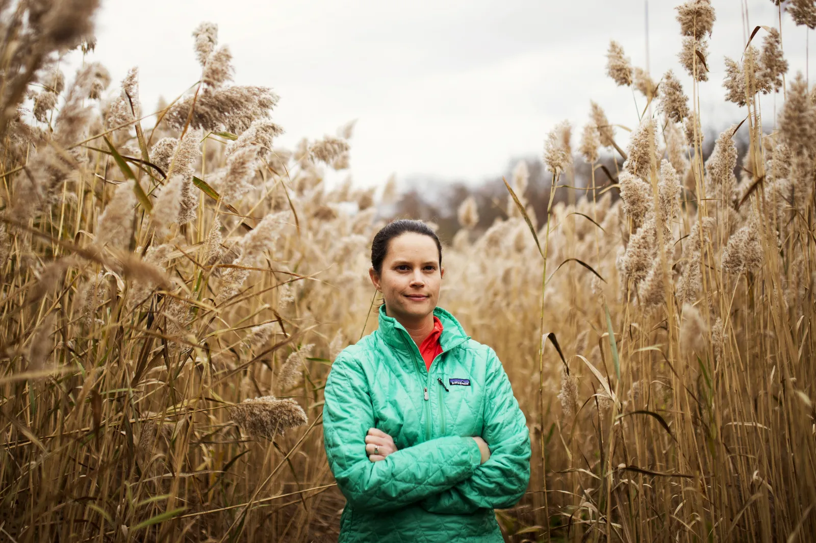 Assistant professor Randall Hughes poses for a portrait by a University greenhouse in Nahant, MA.