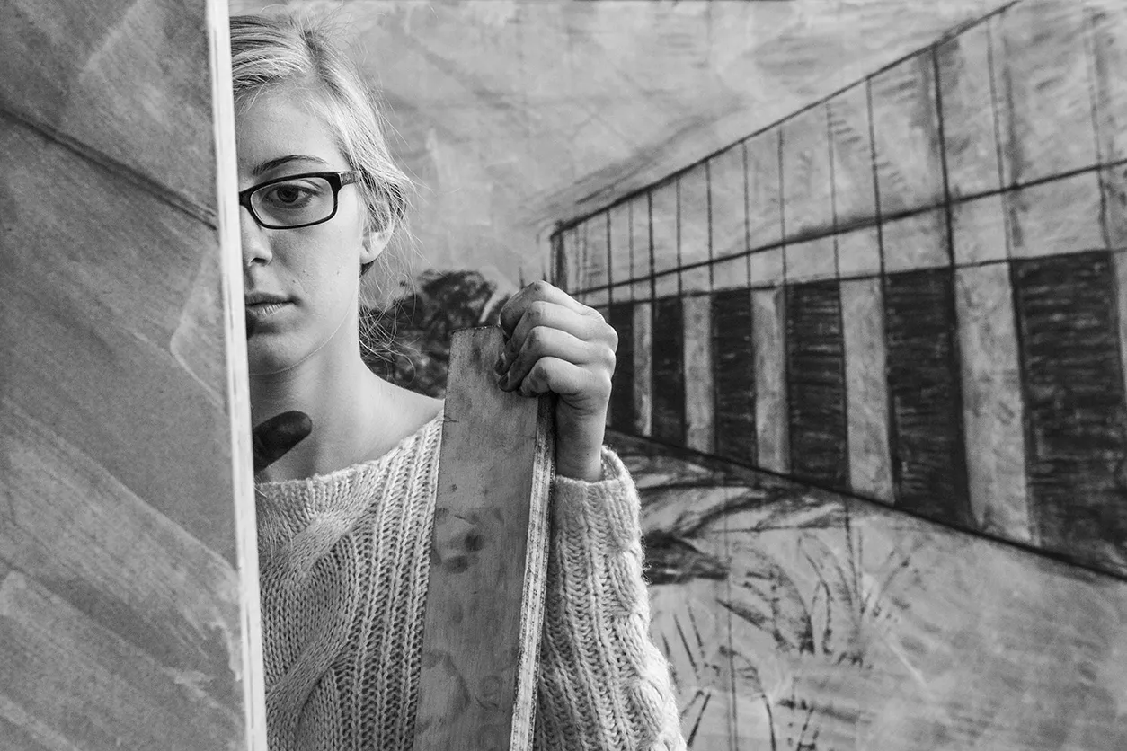 Drawing I, a beginning drawing class, which students are learning perspective drawing with charcoal.
