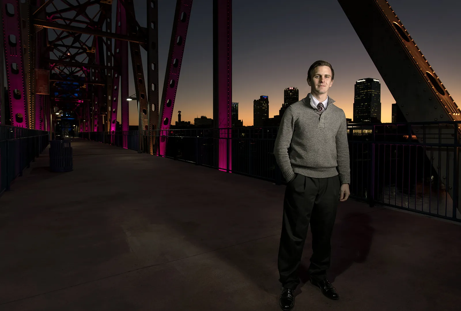 International business major Connor Donovan photographed at the Junction Bridge on December 2, 2015 for an ad campaign.