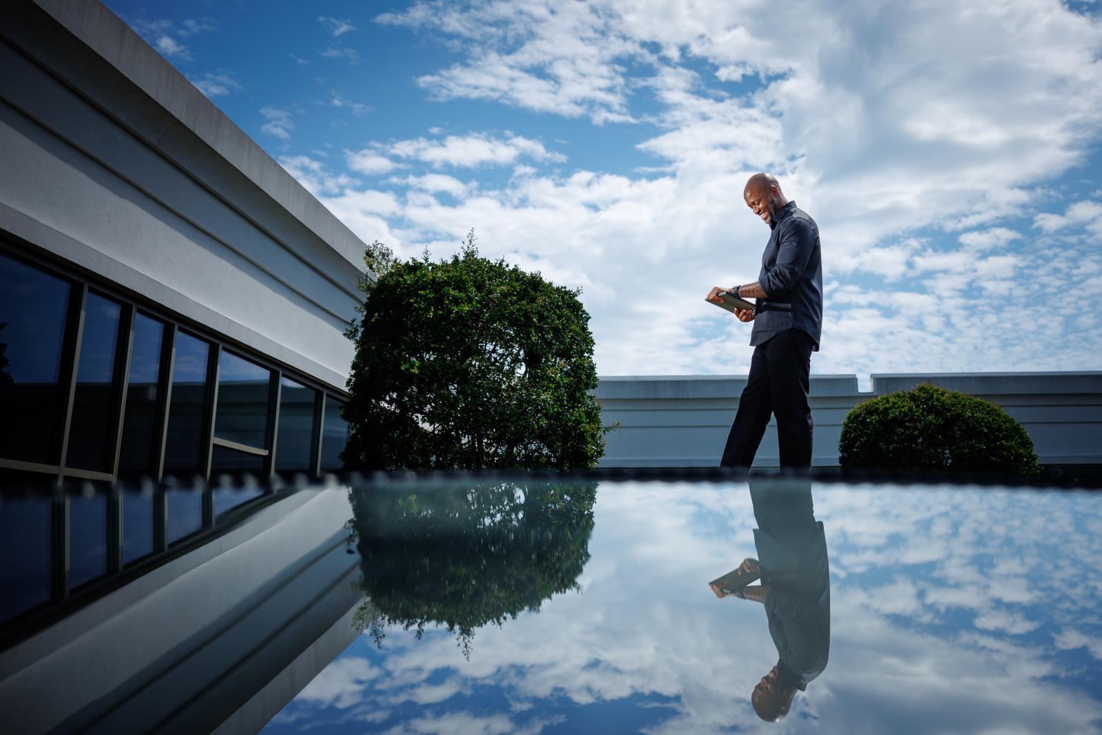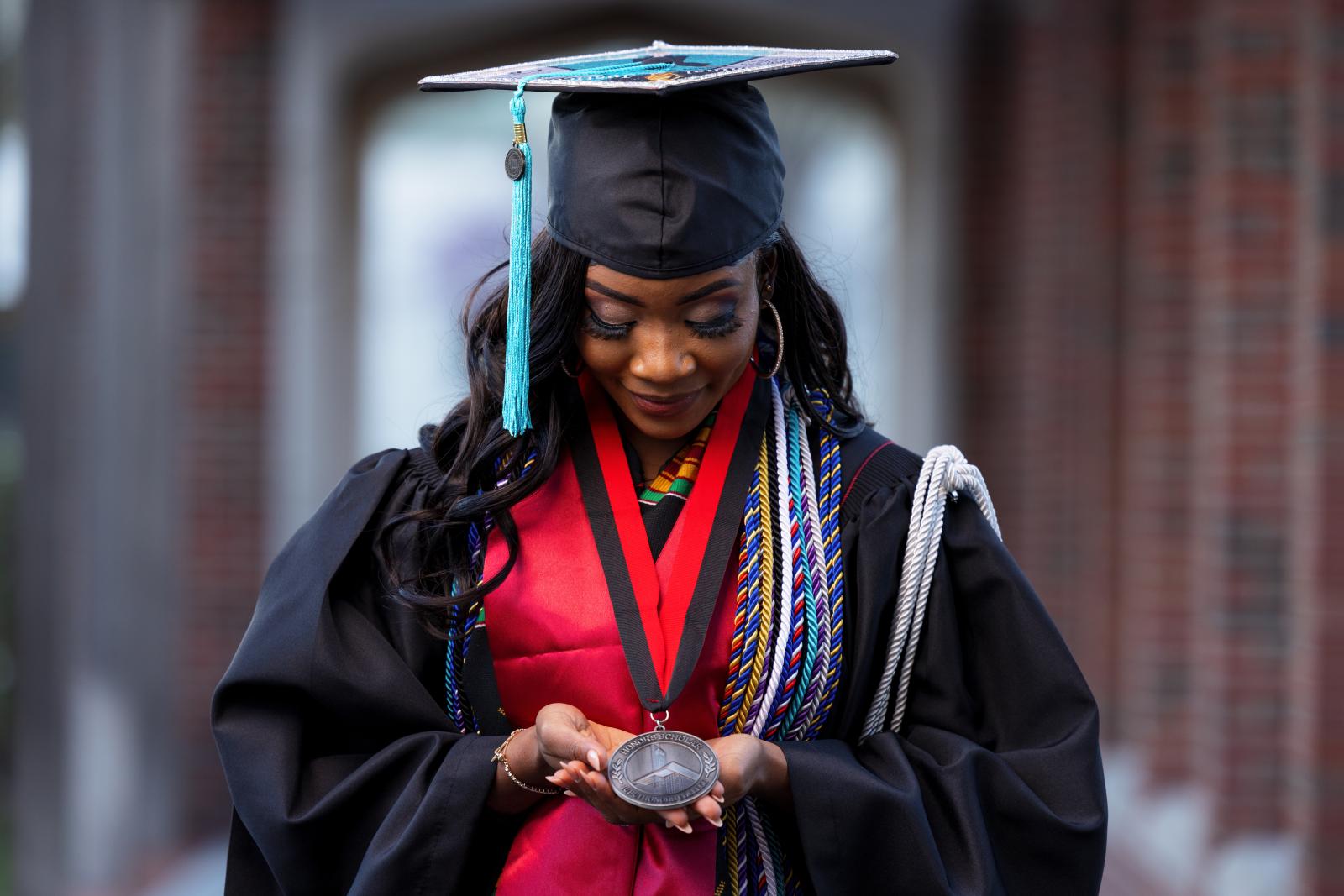 Terry College of Business Online MBA graduate Justin Bridges poses for photos at the Jackson Spalding offices ahead of his convocation ceremony on Thursday, May 08, 2025 in Athens, Ga.