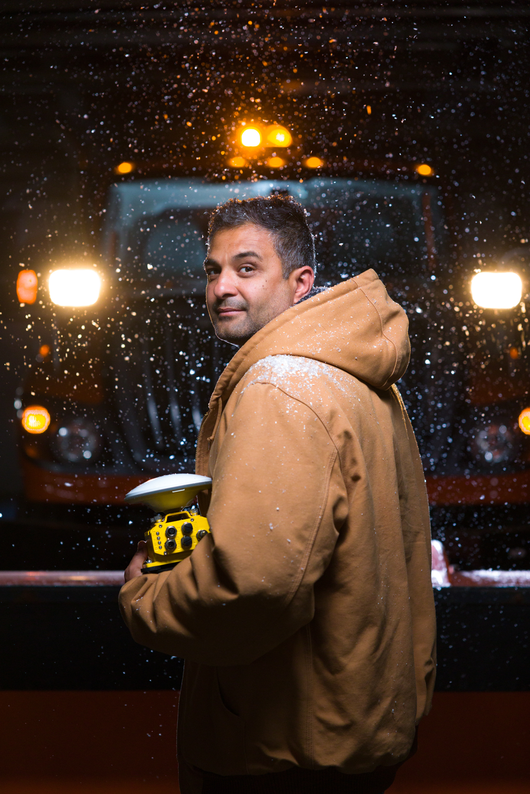 Professor Anuj Sharma worked with the Iowa Department of Transportation to develop a GPS device mounted on top of snowplows to help drivers stay on the road during Iowa's frequent blinding whiteout blizzards.