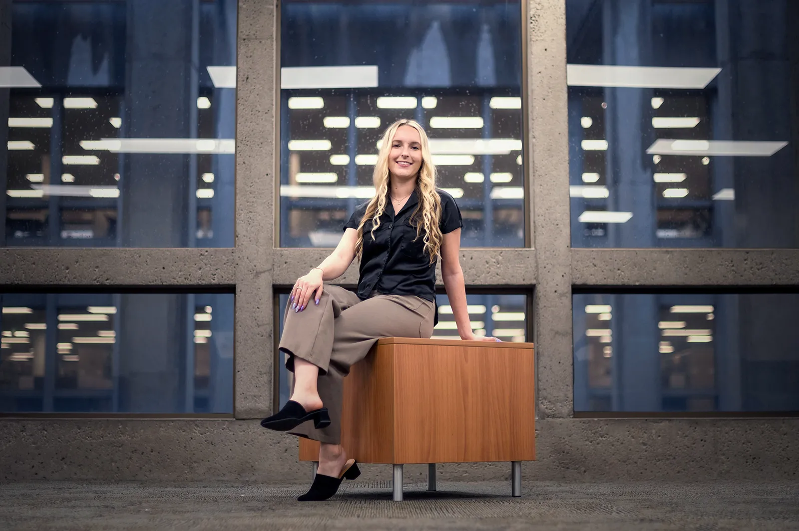 Suni Davis sits for a portrait in the Recreation and Athletic Center in Austin, Texas on Thursday, Oct. 9, 2025. (Used remove tool to take out lighting stand and lens flare.)