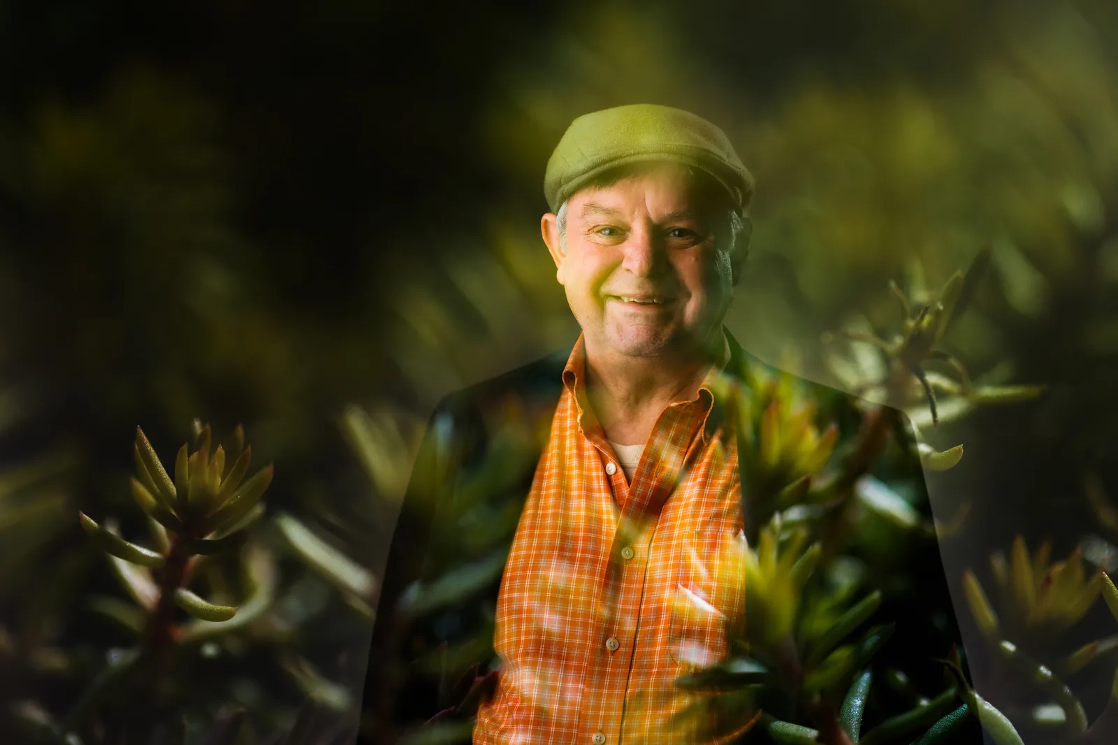 Double exposure portrait of a professor in the Department of Plant Sciences.