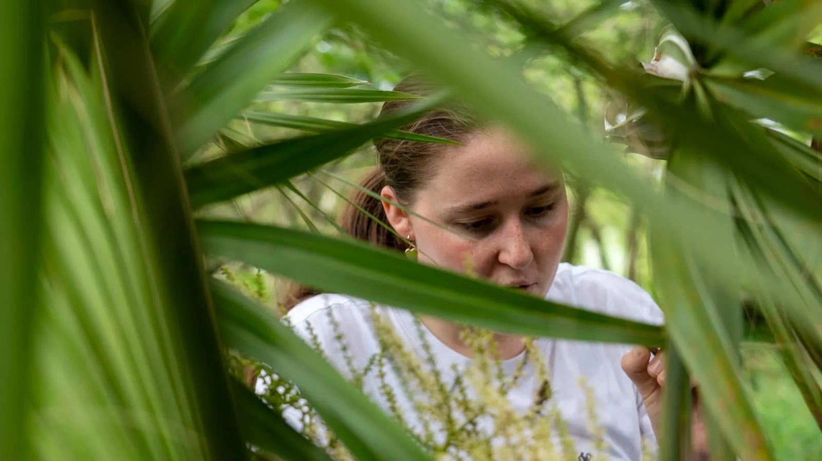 Biology Student Isabella Childress plucks pollen samples from a rare Florida plant in order to analyze and learn more about how pollen travels.