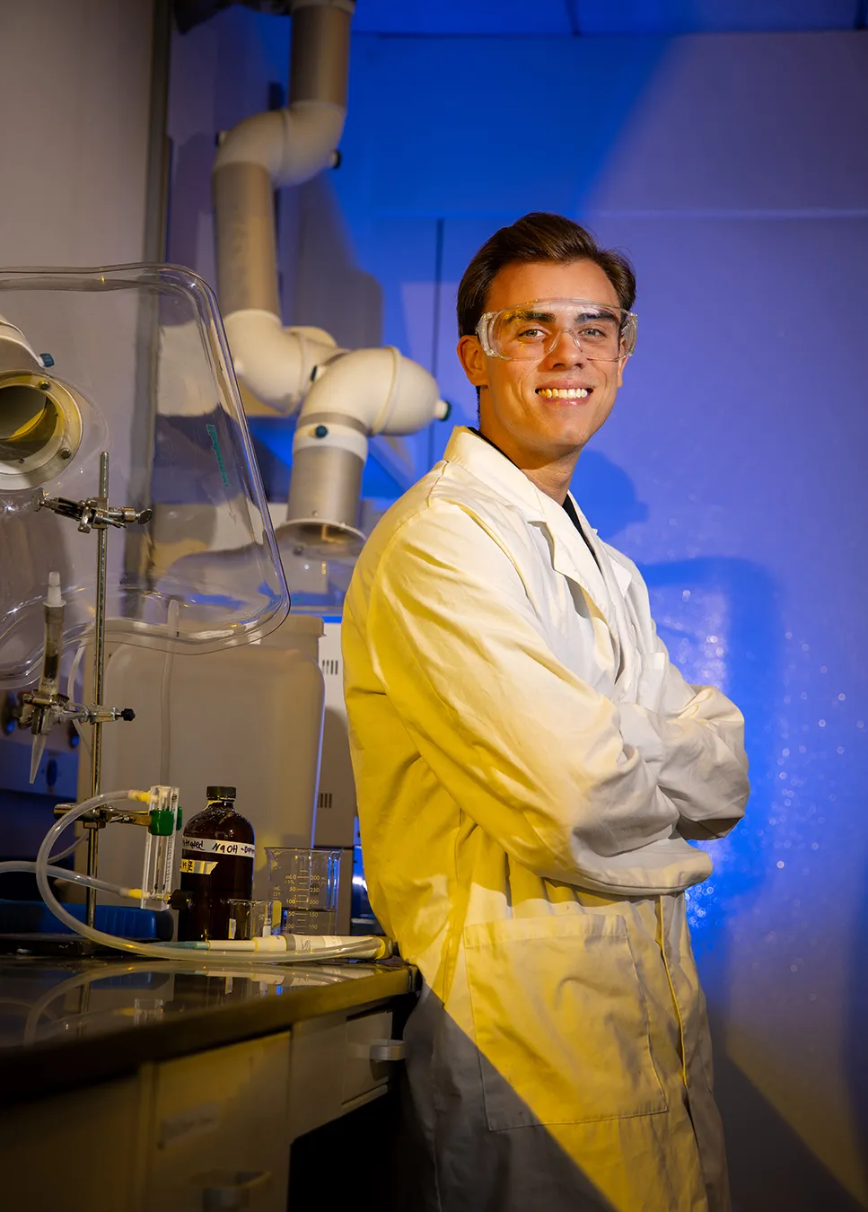 Portrait of Thomas Howlett, Chemical Engineering, Student Athlete, and SoCal Gas Intern, on November 12, 2024. Howlett received support through the Tilga Grant Program.