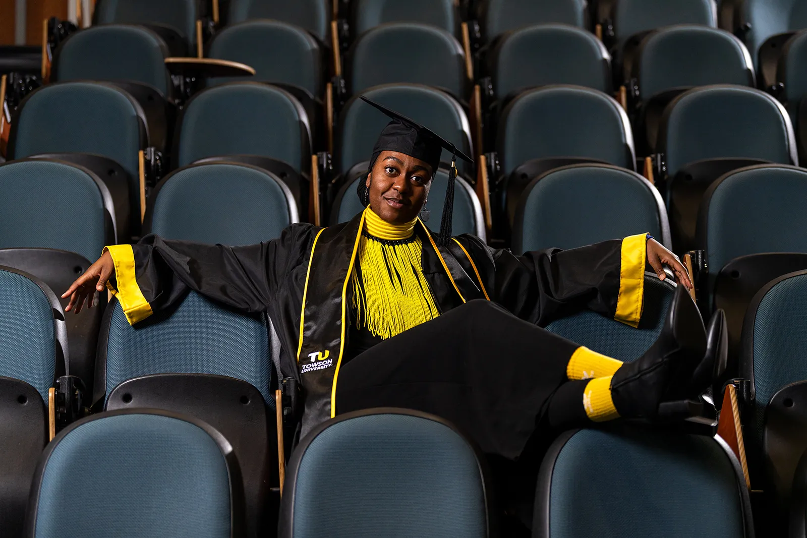 A portrait of Rose Marika Mwansa shot for a story highlighting graduating Towson students who had achieved and contributed a lot during their time at TU.