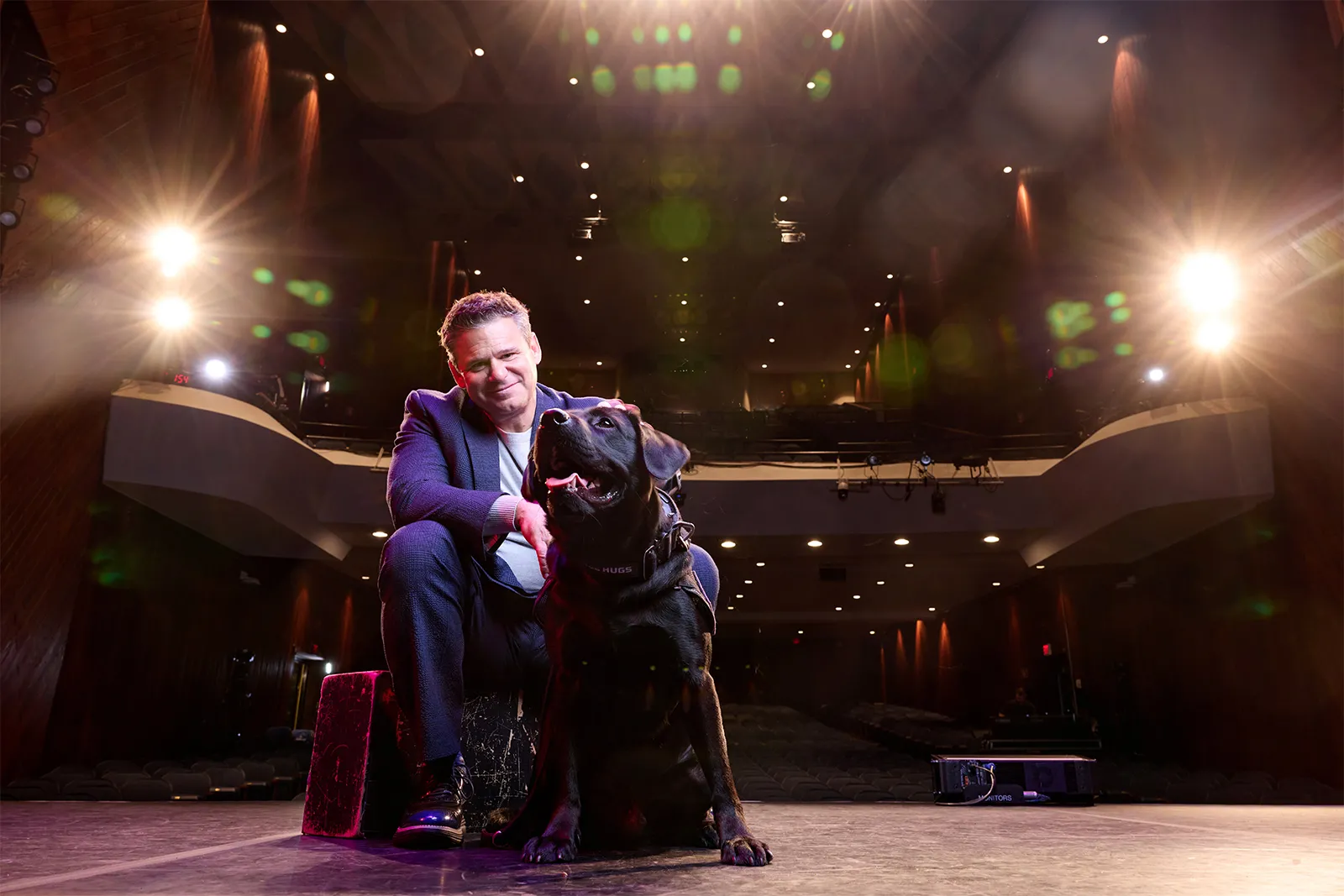 Berklee's newest president poses with Barklee, the campus police's most popular recruit.