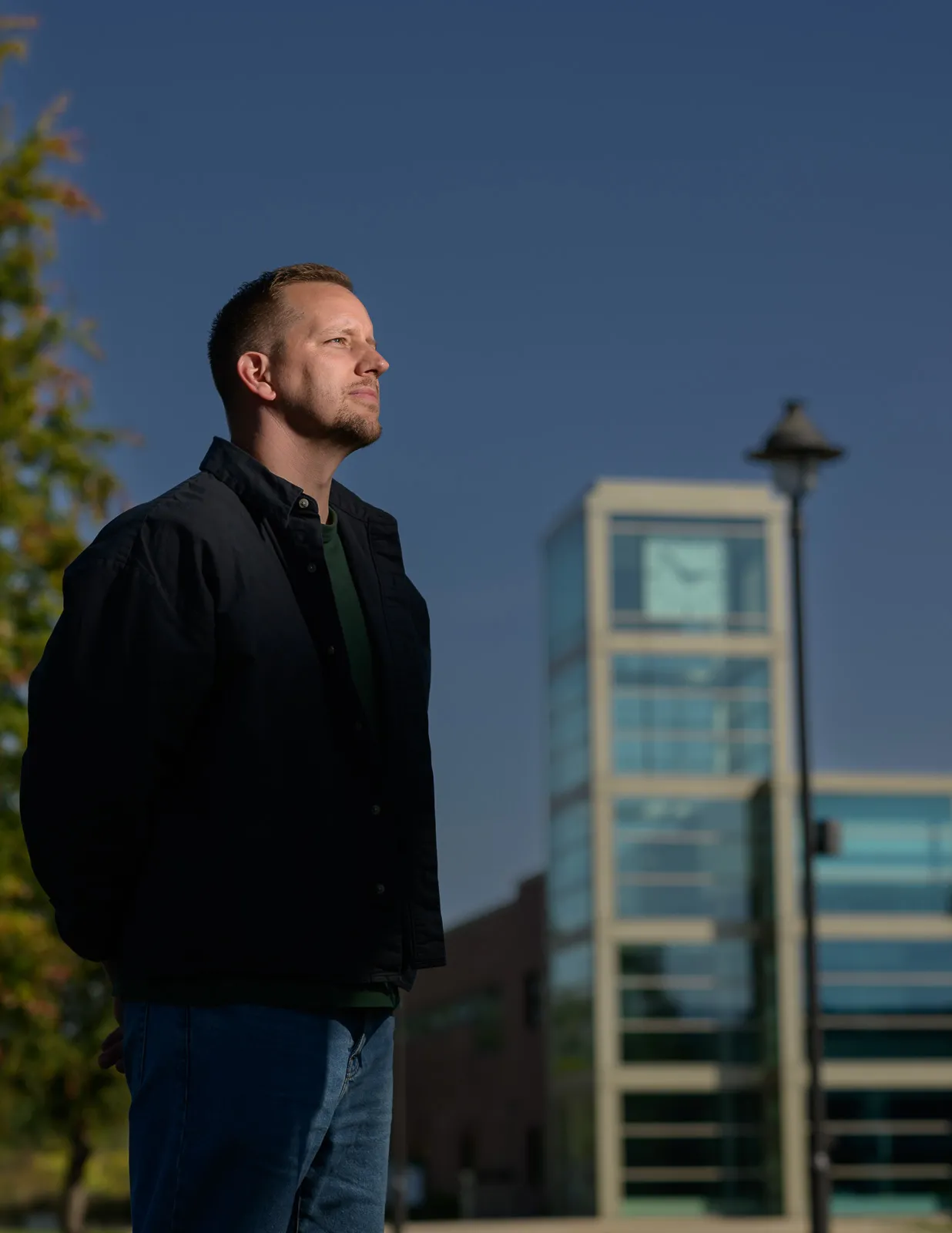 University of Maryland Professor of Environmental and Occupational Health Donald K. Milton poses for a portrait inside the Gesundheit II in his lab.