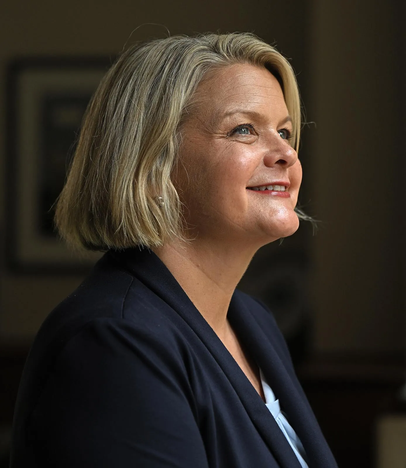 Andrea Chapdelaine, the 12th President of Connecticut College, poses for a photo in her Fanning Hall office.