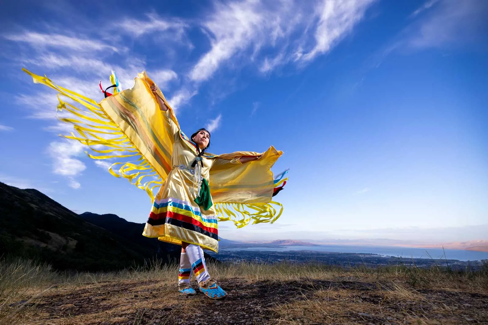 Addie Begay performs traditional dance as part of the Native American Initiative's outreach program to connect with the Indigenous Nations in the area.
