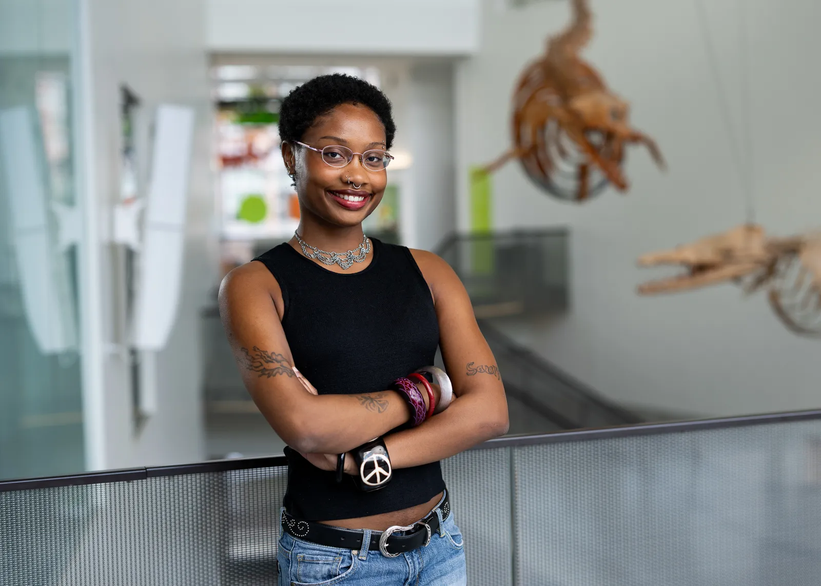 Student poses for an environmental portrait for the University Ecology & Evolutionary Department.