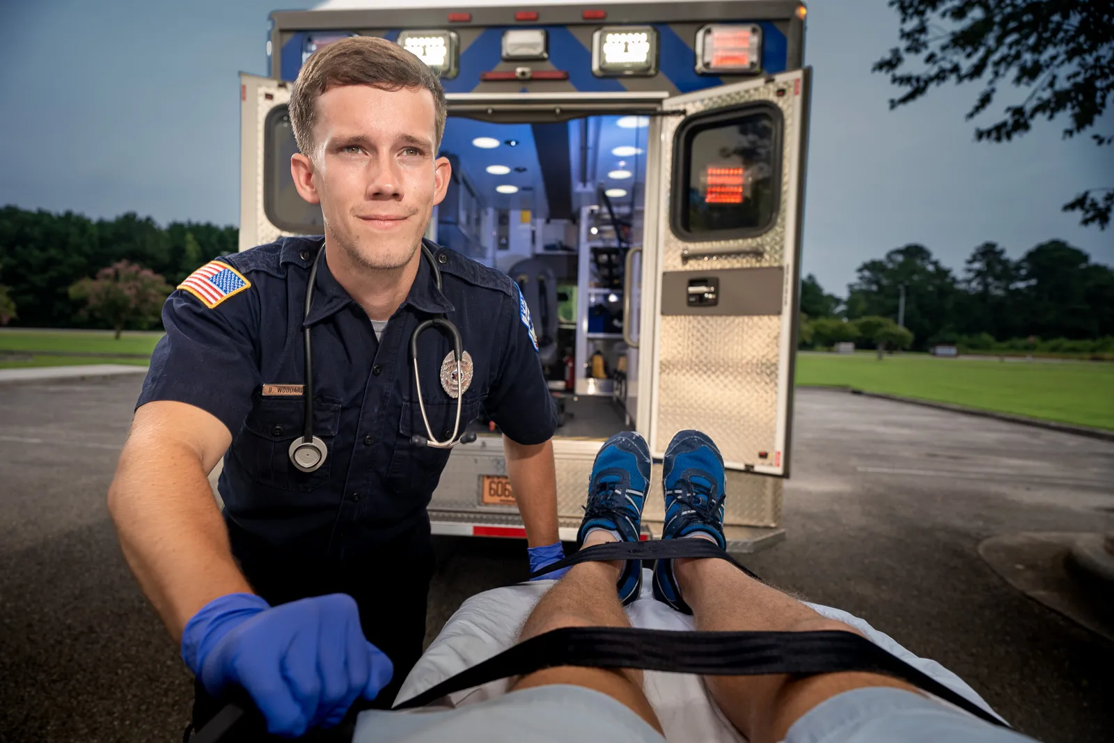 UNCW School of Nursing student Ben Woodard works as an Paramedic for Pender County as he takes classes fulltime at UNCW's School of Nursing. His goal is to go to medical school at UNC.