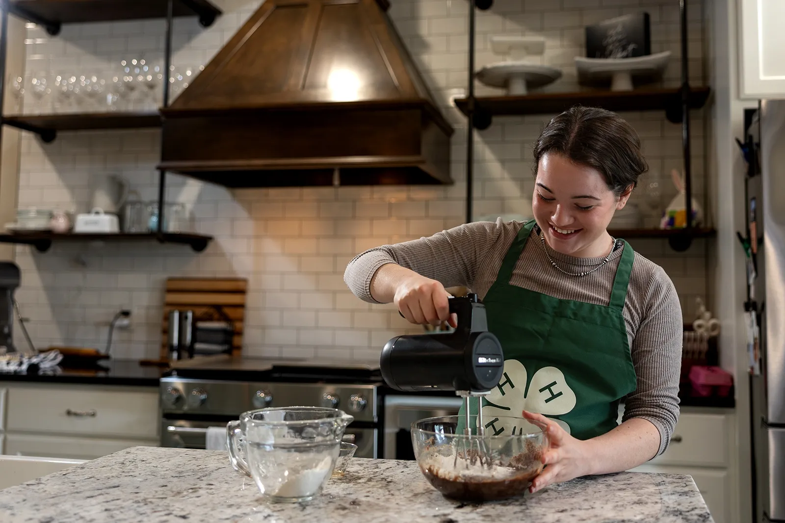 Emma, a Payne County 4-H Member, works on making cookies at Cathy Allen’s home in Stillwater for Food, Fun, 4H on Wednesday, March 27, 2024. This photo was shot to promote the event, while other photos were created for the curriculum.