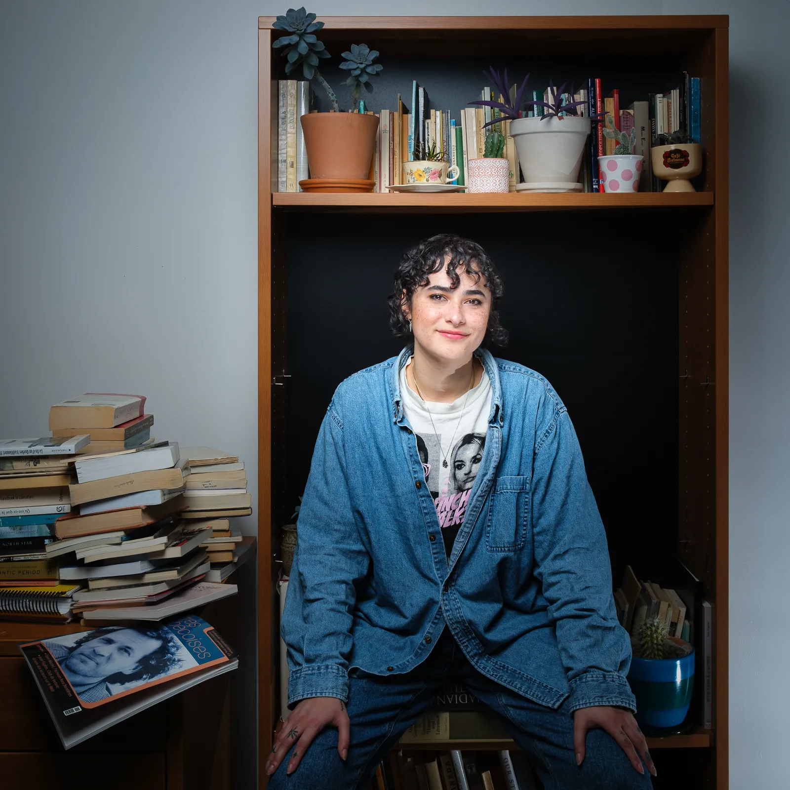 Léa Murat-Ingles portrait is one of 6 portraits of university members promoting activities for the LGBTQ+ week on campus. She's a literature graduated student and told the photographer she likes small plants.