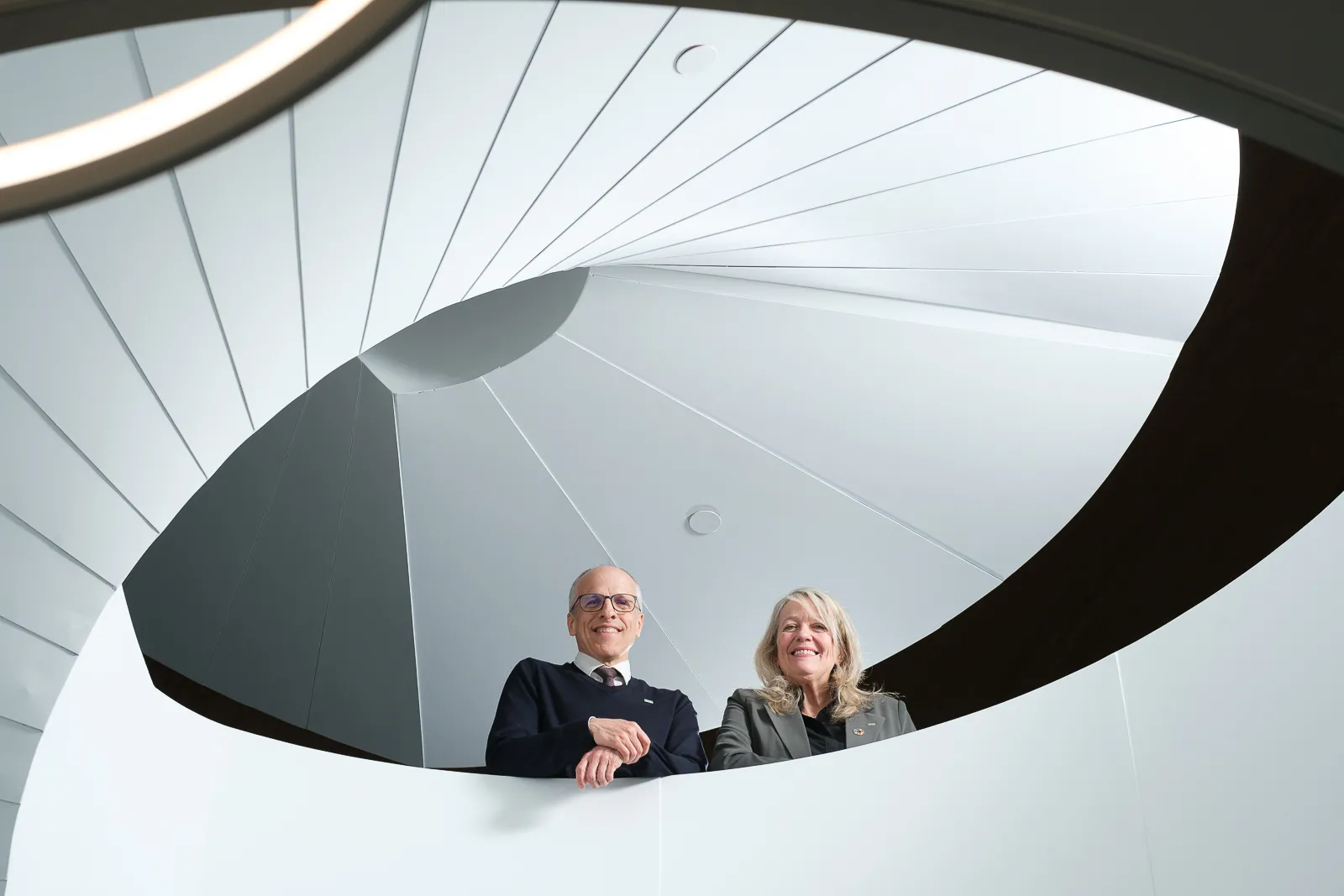 Pierre Cossette, rector, and Denyse Rémillard, vice-rector for administration. The portrait was planned to be used in the Annual report of the University and been made in the Quantum Institute, the newest building of the campus.