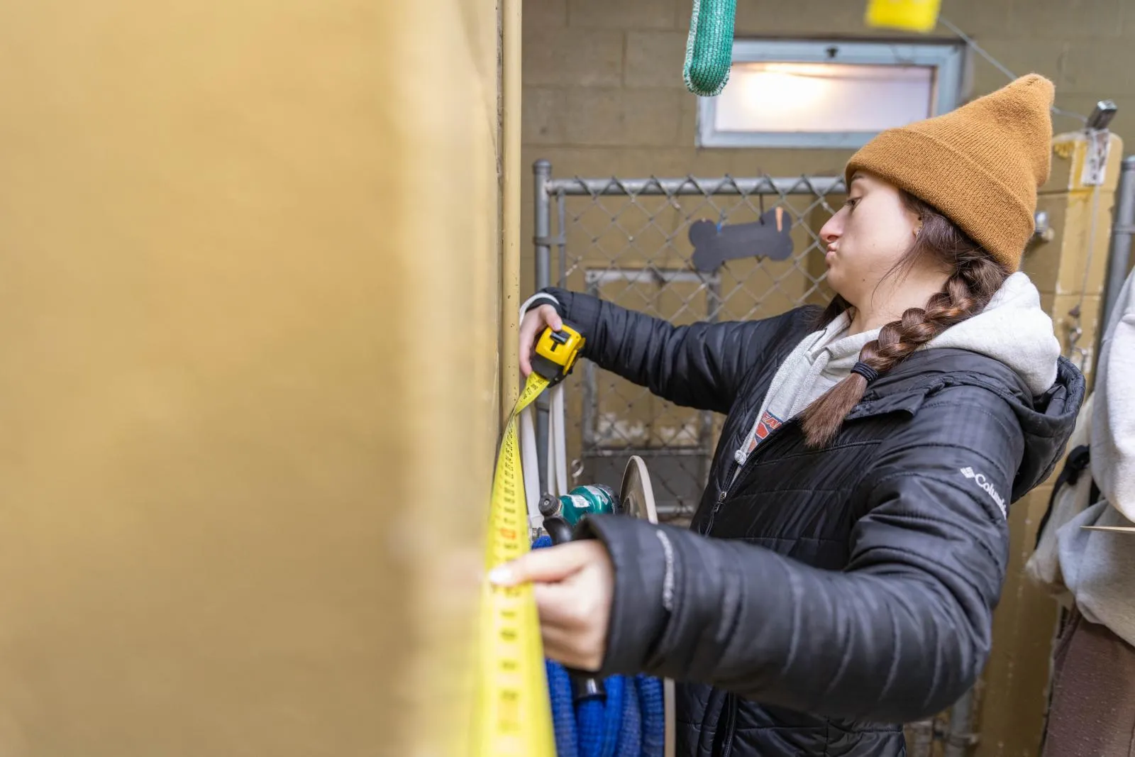 An interior design class is working with a nearby animal shelter to reimagine an old building. Building measurements are an important first step.