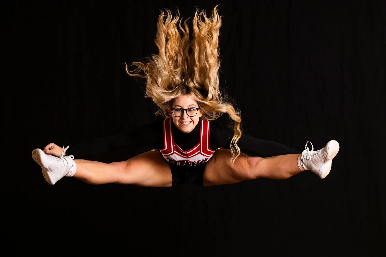 IU South Bend cheerleaders participate in a Media Day photoshoot Friday, Dec. 8, 2023, on campus at IUSB.