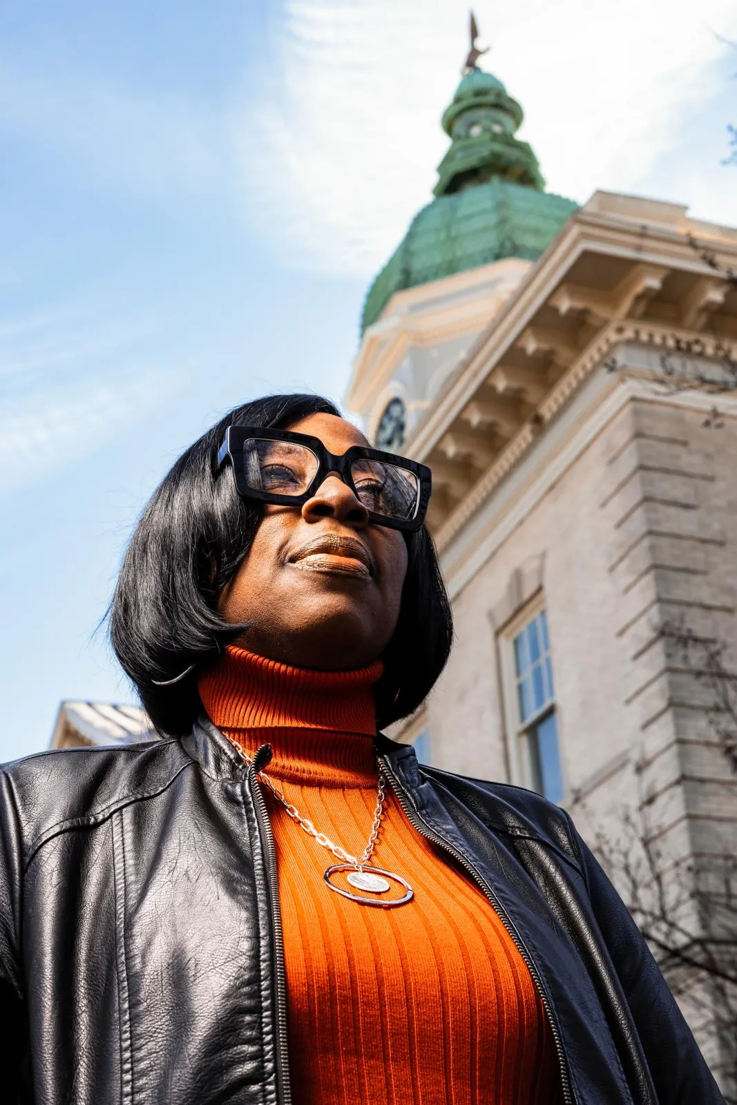 Terris Thomas, director of neighborhood engagement for Family Connection Communities in Schools, poses for a portrait at Athens City Hall for her UGA Fulfilling the Dream Award profile.
