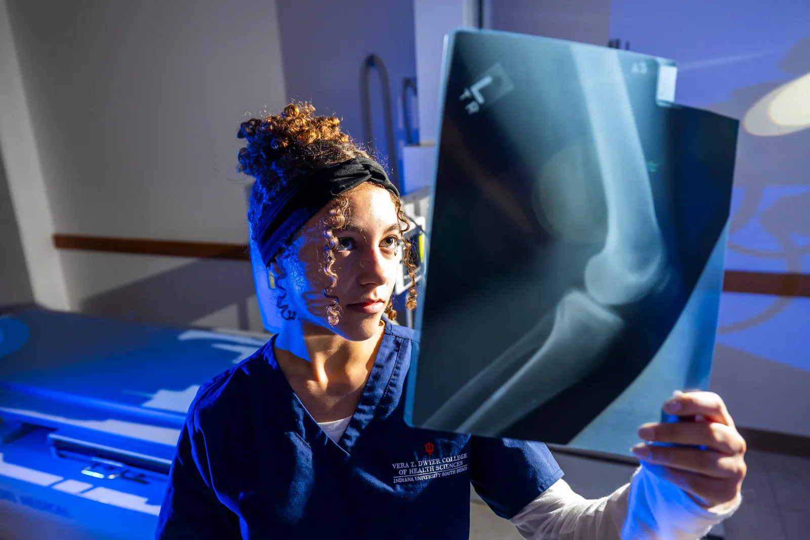 A radiography student poses for a portrait in the lab Thursday, Nov. 2, 2023 in Northside Hall on campus at IUSB.