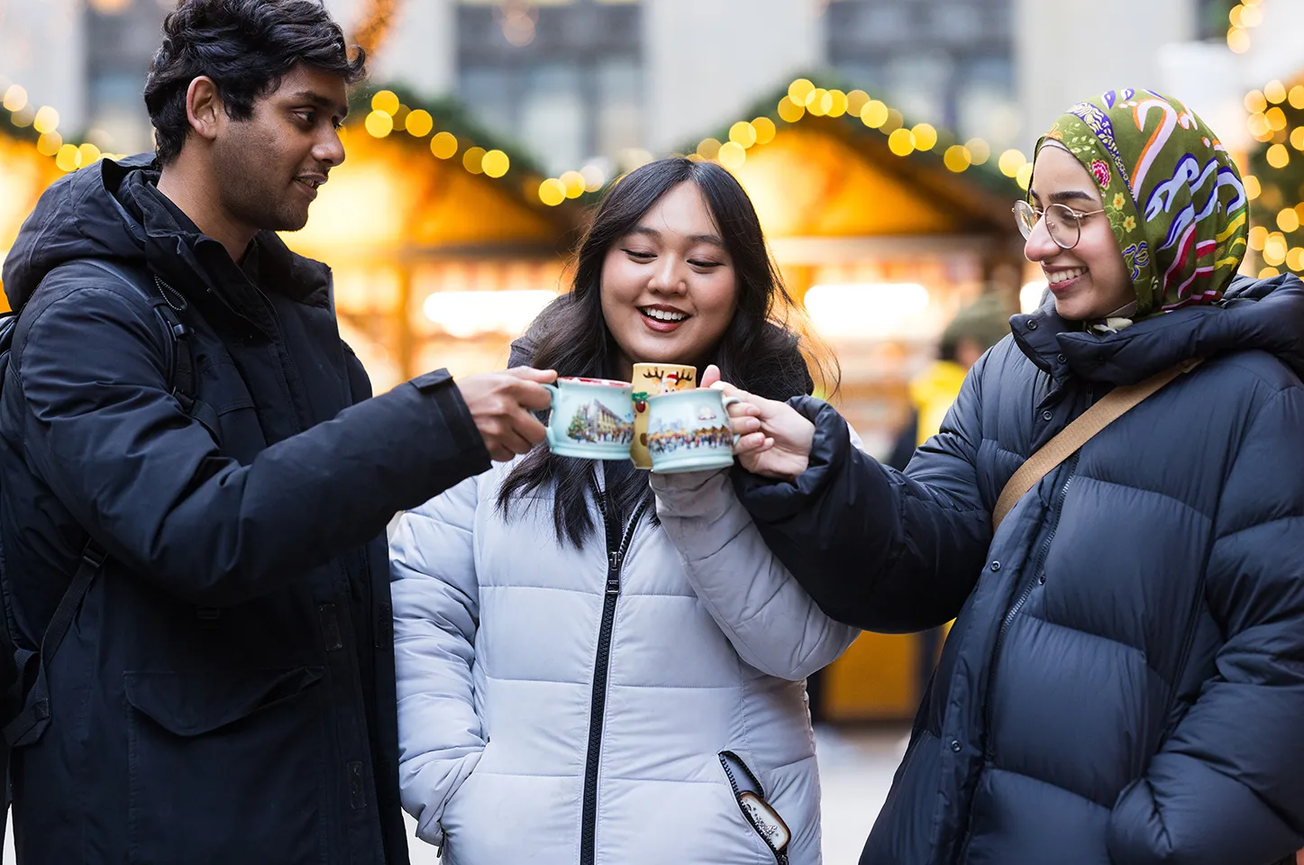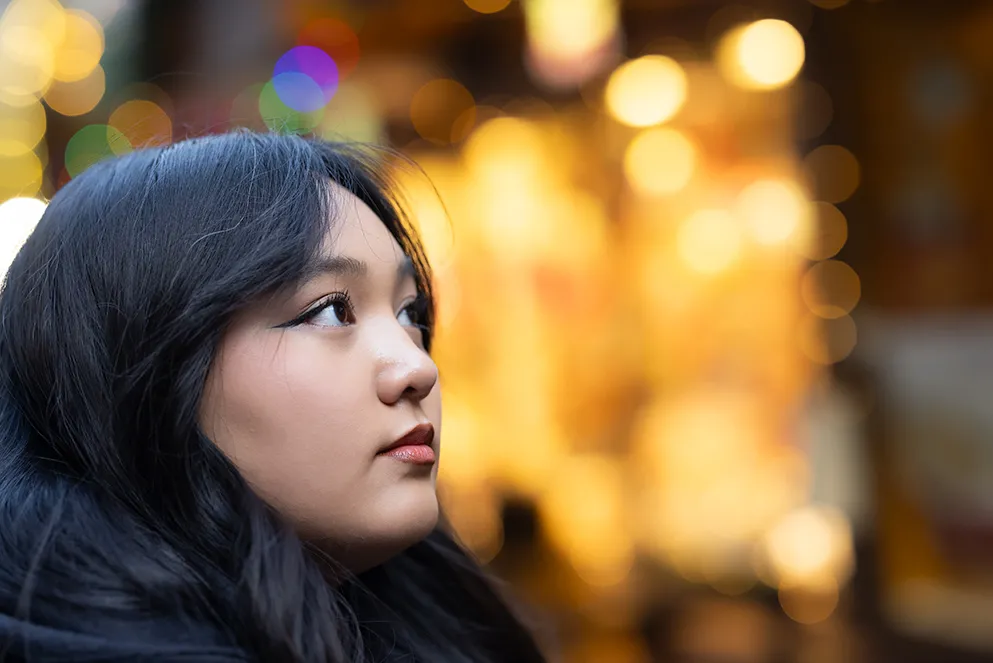 A student portrait photographed downtown Chicago during a Christmas festival.