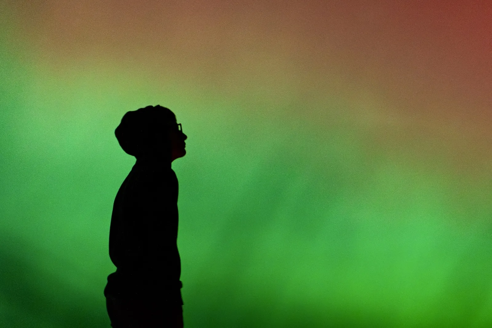 A student takes a photograph of the Northern Lights that appeared over campus.