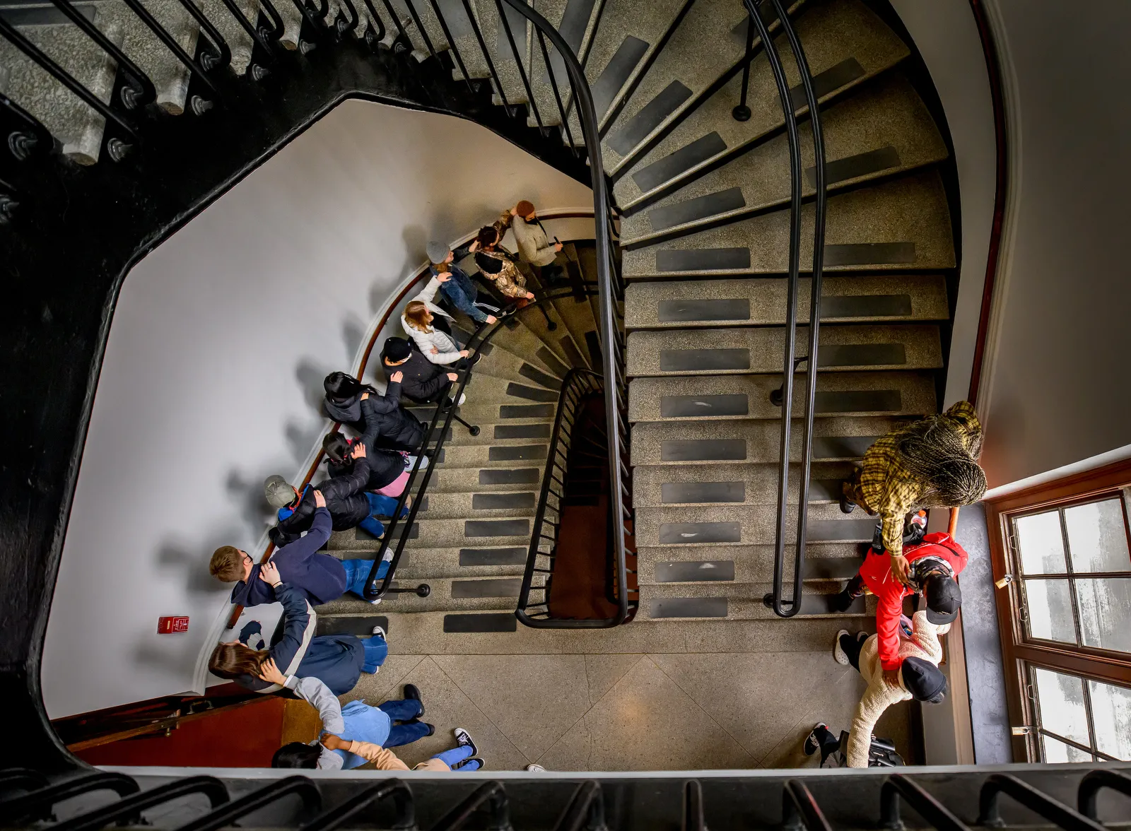 The experience of descending down the stairs of the Architecture Building is completely different when your eyes are closed the entire time. Participants took part in a program to heighten awareness of non-sighted people during a Blind Field Shuttle with a human daisy chain working their way across campus with only the person in front of you to guide your next step.