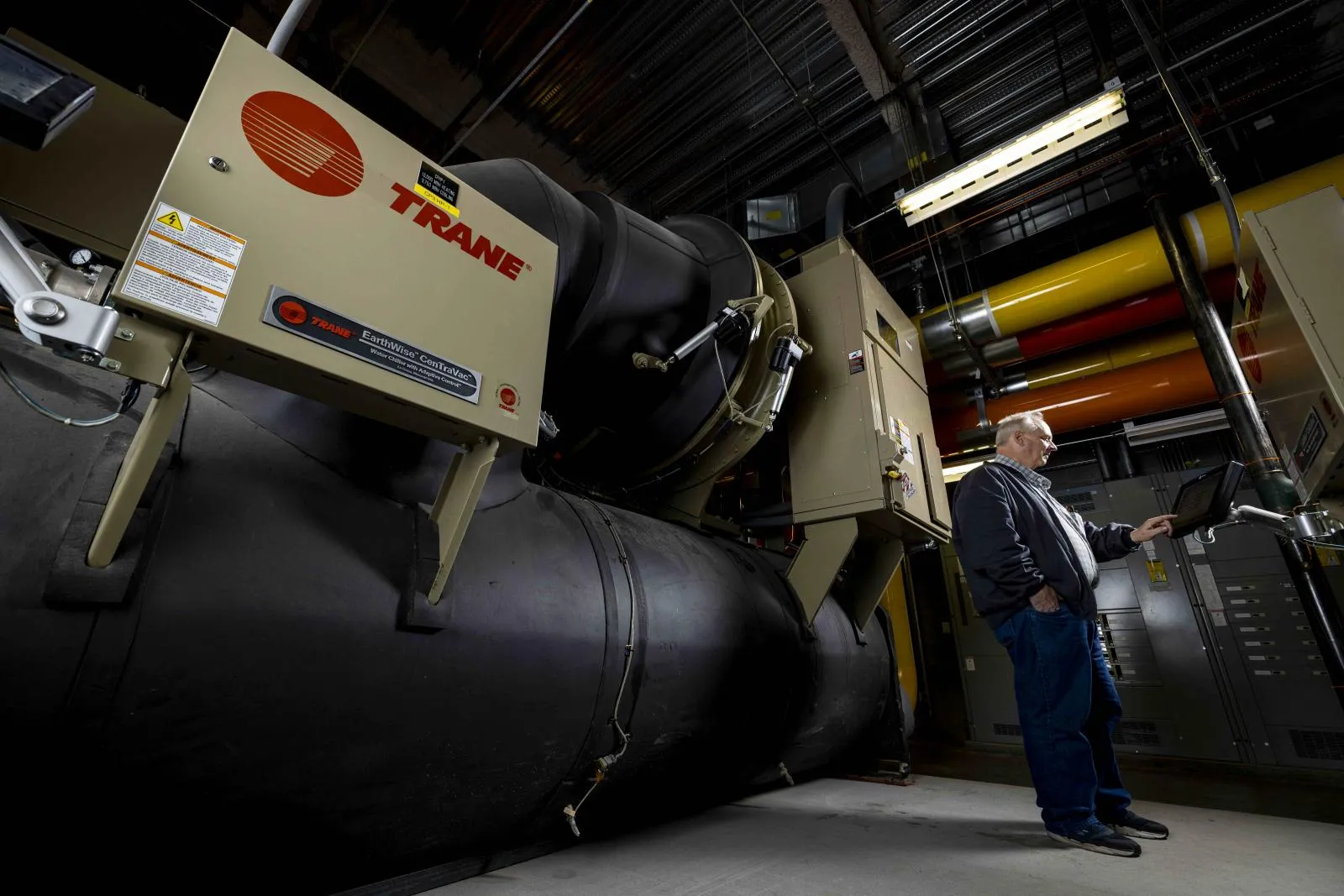 A facilities employee works at the Central Plant on the campus of Utah Valley University in Orem, Utah, on Monday, March 20, 2023.