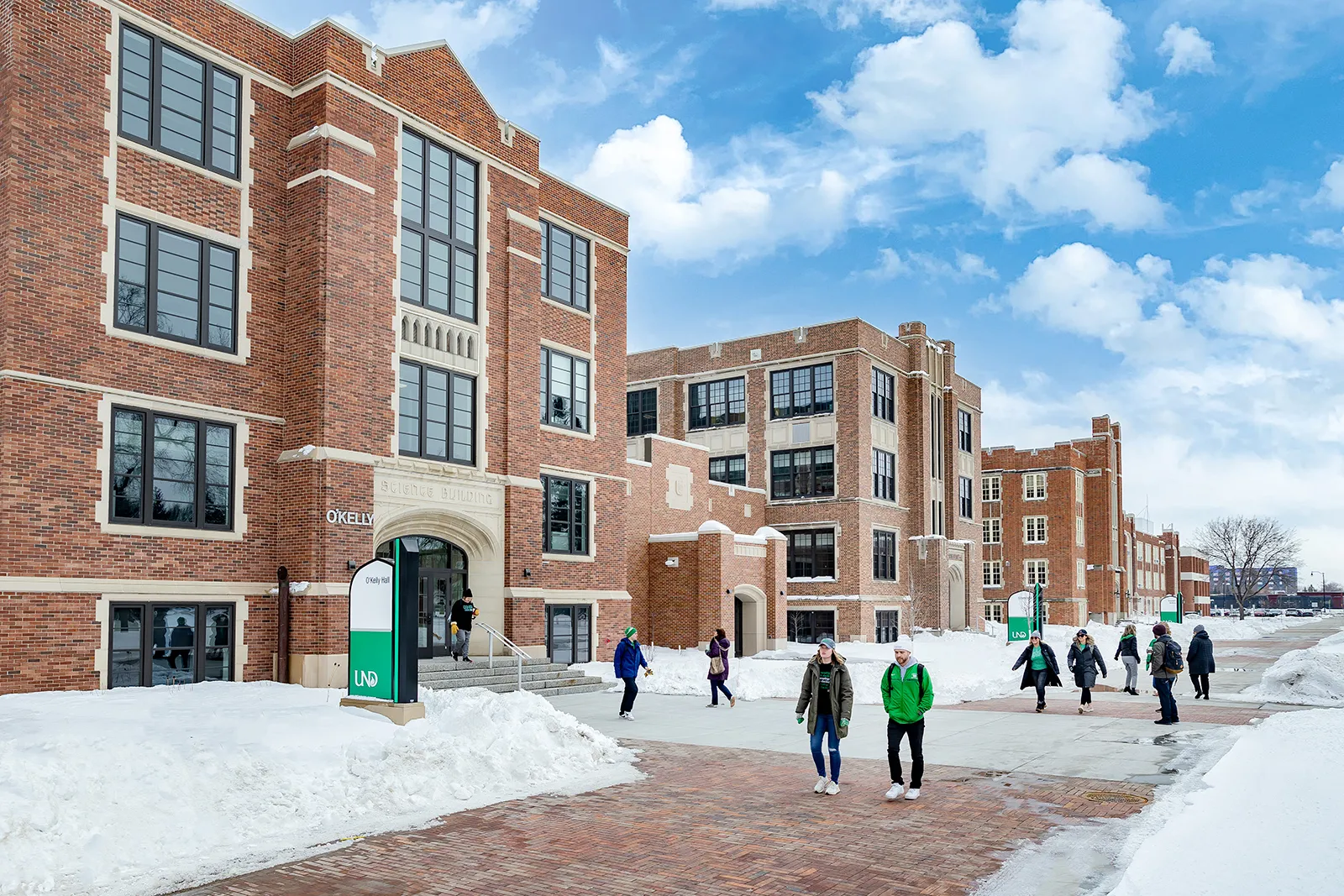 Our campus, still very snow covered, in late March as students returned from spring break.