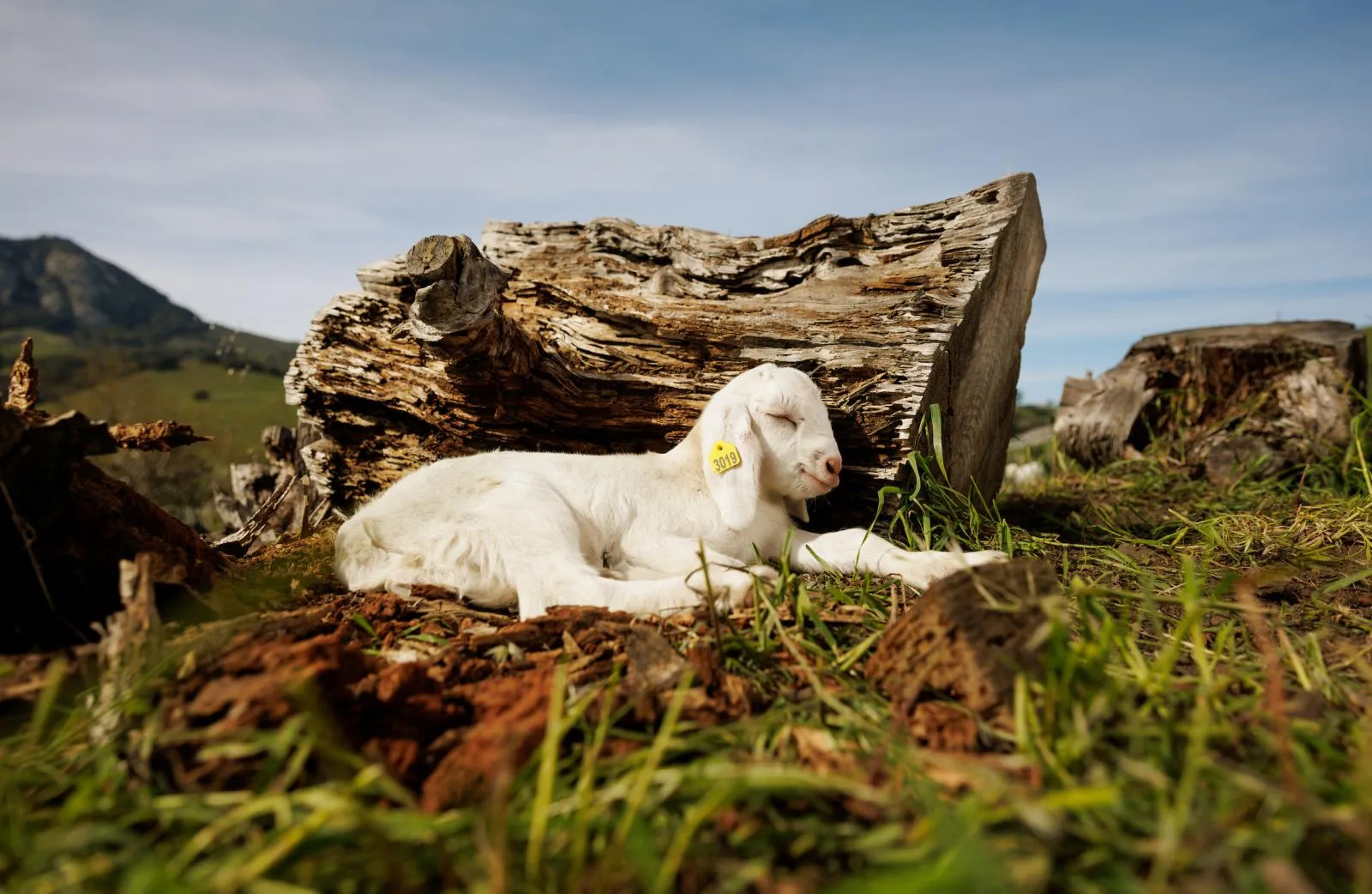 A newborn baby goat naps in the sun on the university's Cheda Ranch Property during the goat enterprise class. The class teaches students how to properly care for goats throughout their life cycle.