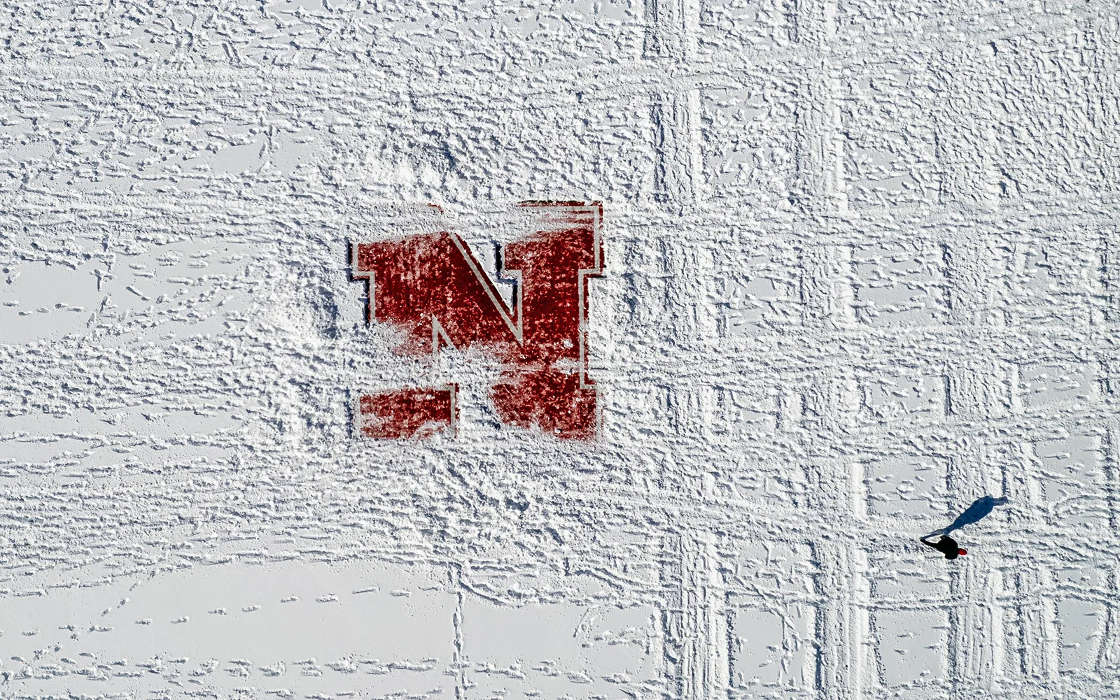 A person walks on the snow covered Memorial field. The "N" at midfield is always cleared following a snow. Lincoln received more than 8 inches of snow Thursday. OK, the title may not match the past few years of Husker football, but historically ........