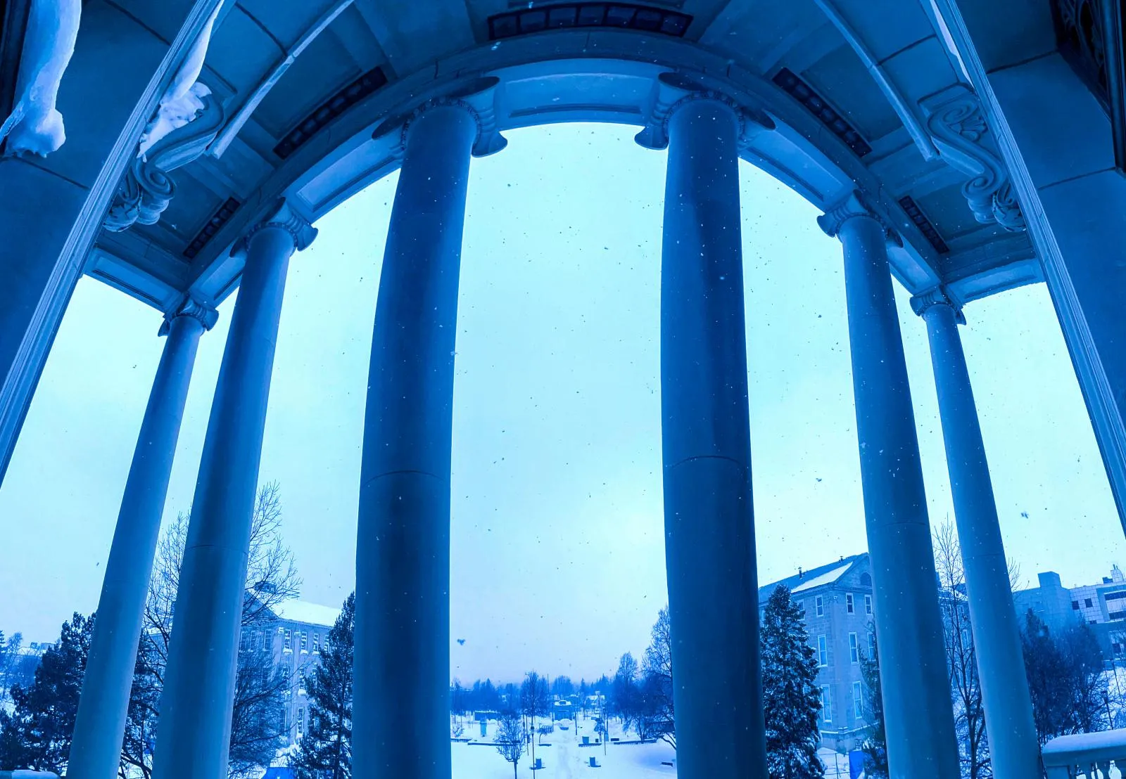 Winter break becomes exactly that as a snow squall and blustery winds blow across Bardeen Quad.