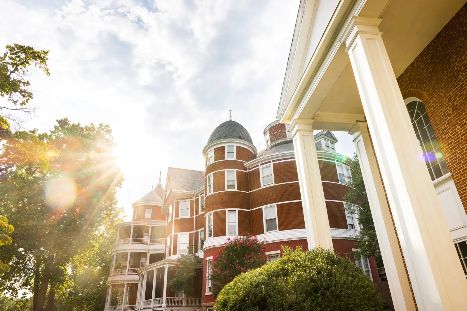 Our beloved Main Hall is photographed in the summer sunshine as we eagerly anticipate the return of our students.