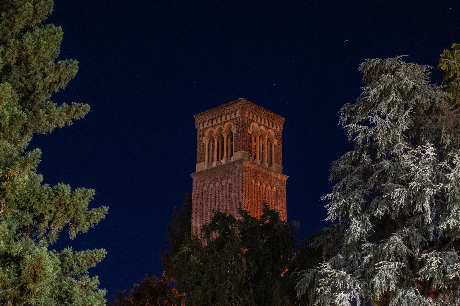 The Trinity Bell Tower at night on Thursday, July 14, 2022 in Chico, Calif.