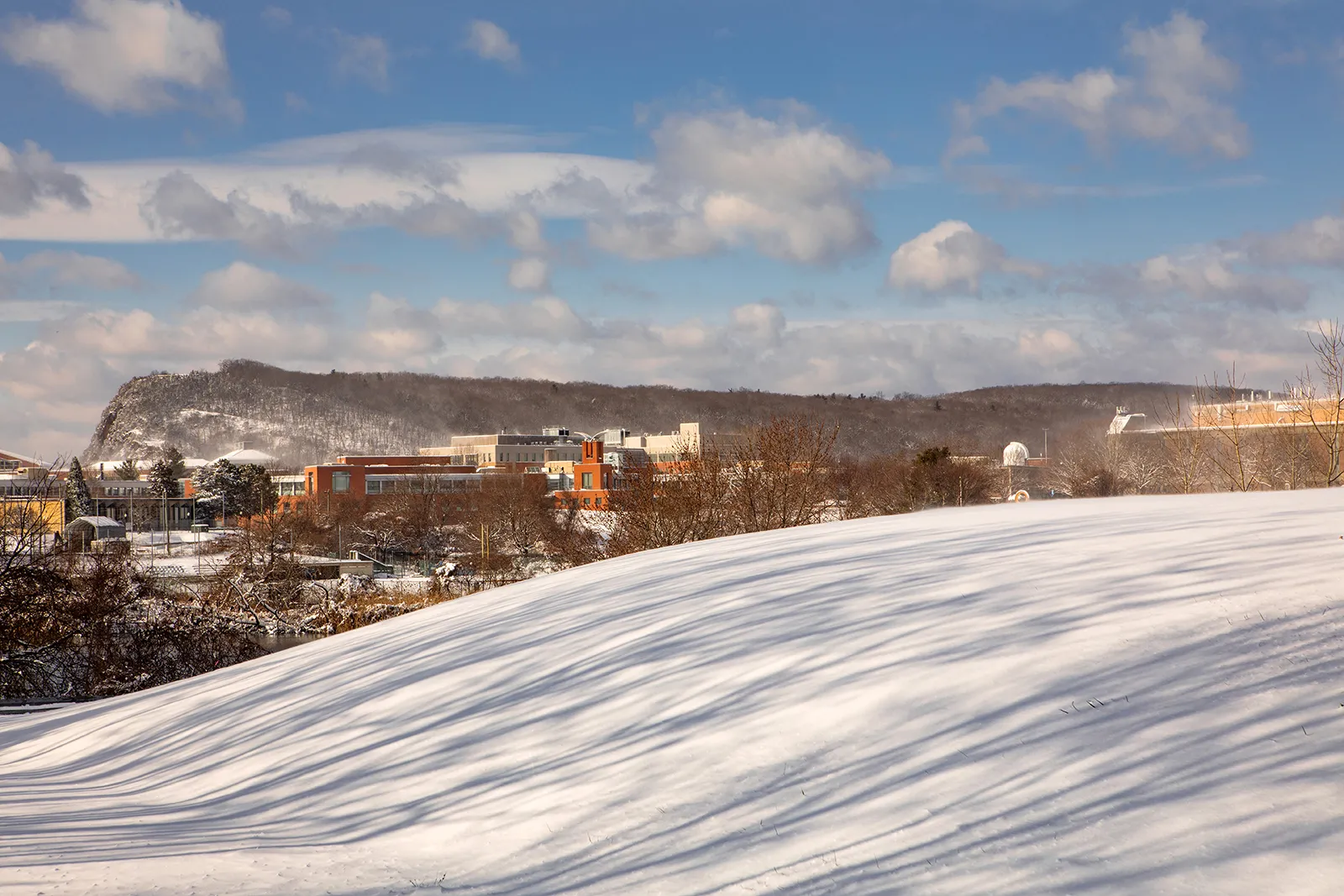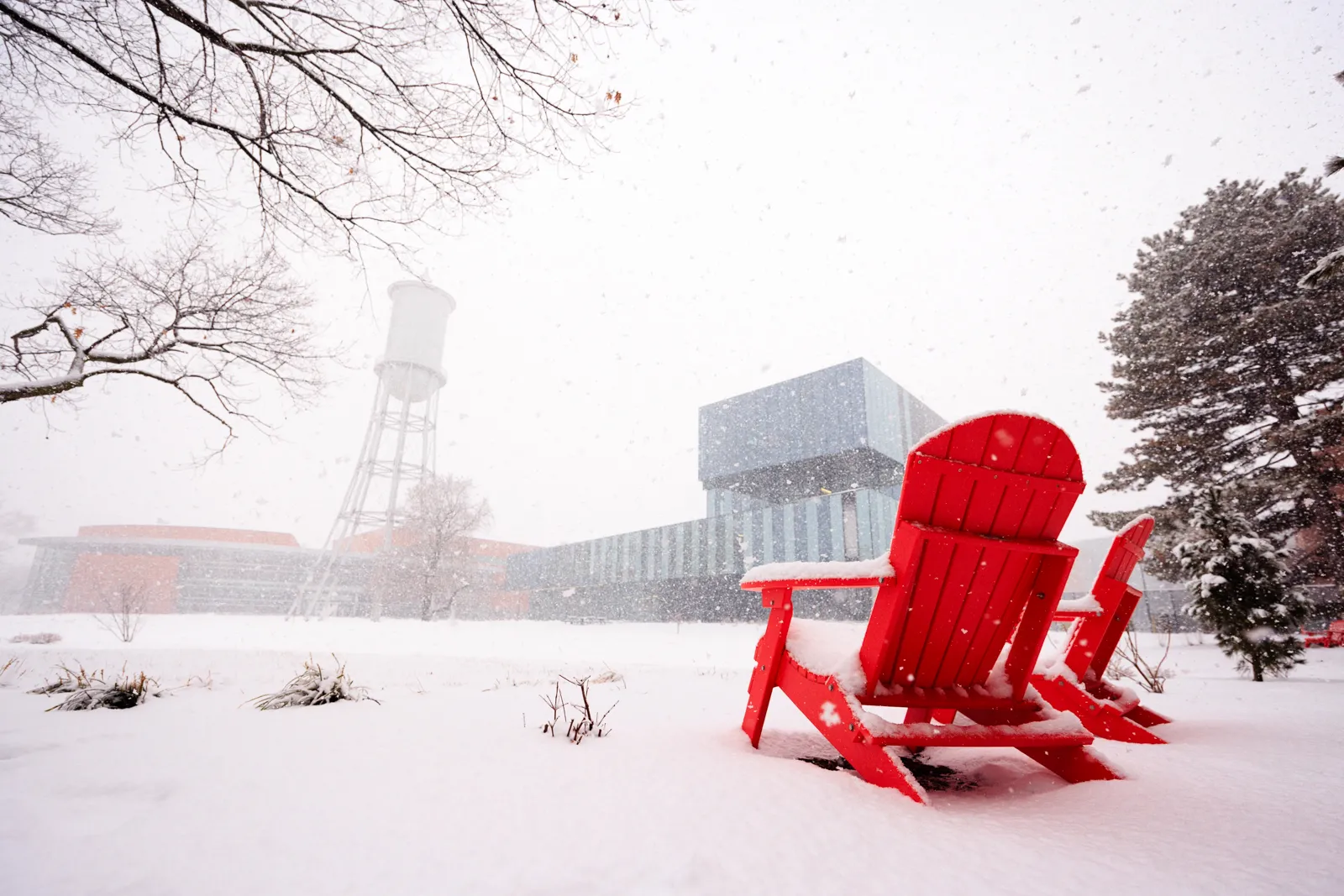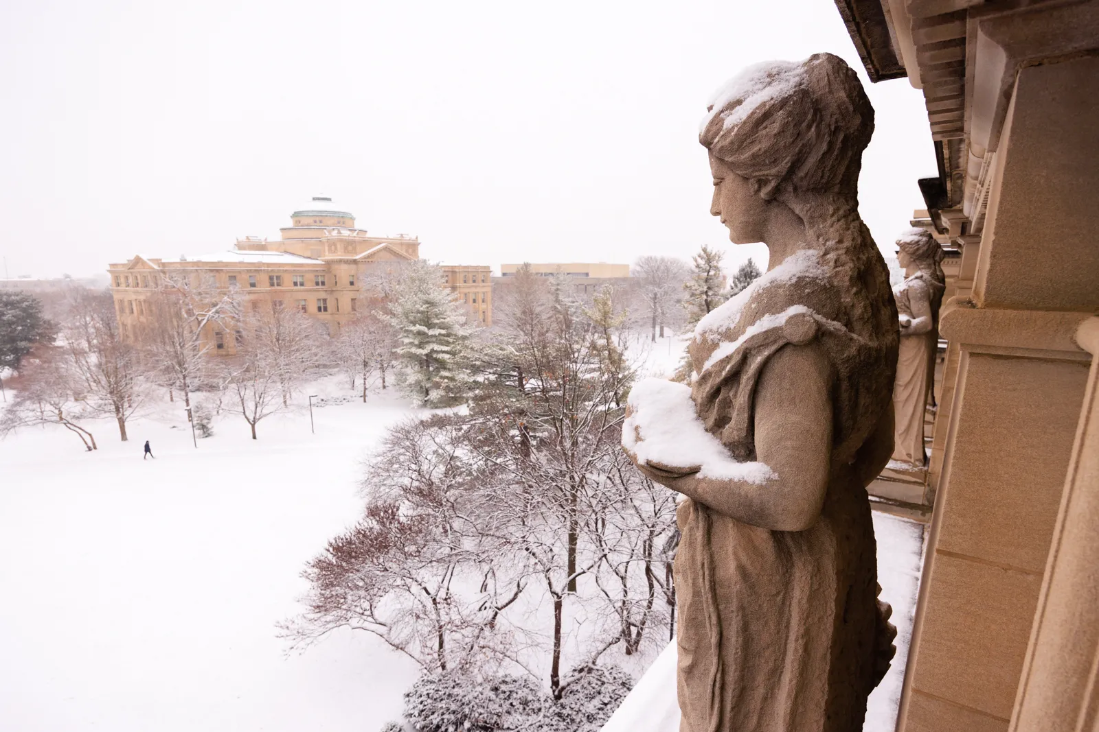 A quiet campus after the first snow fall in January, before students have returned to campus.