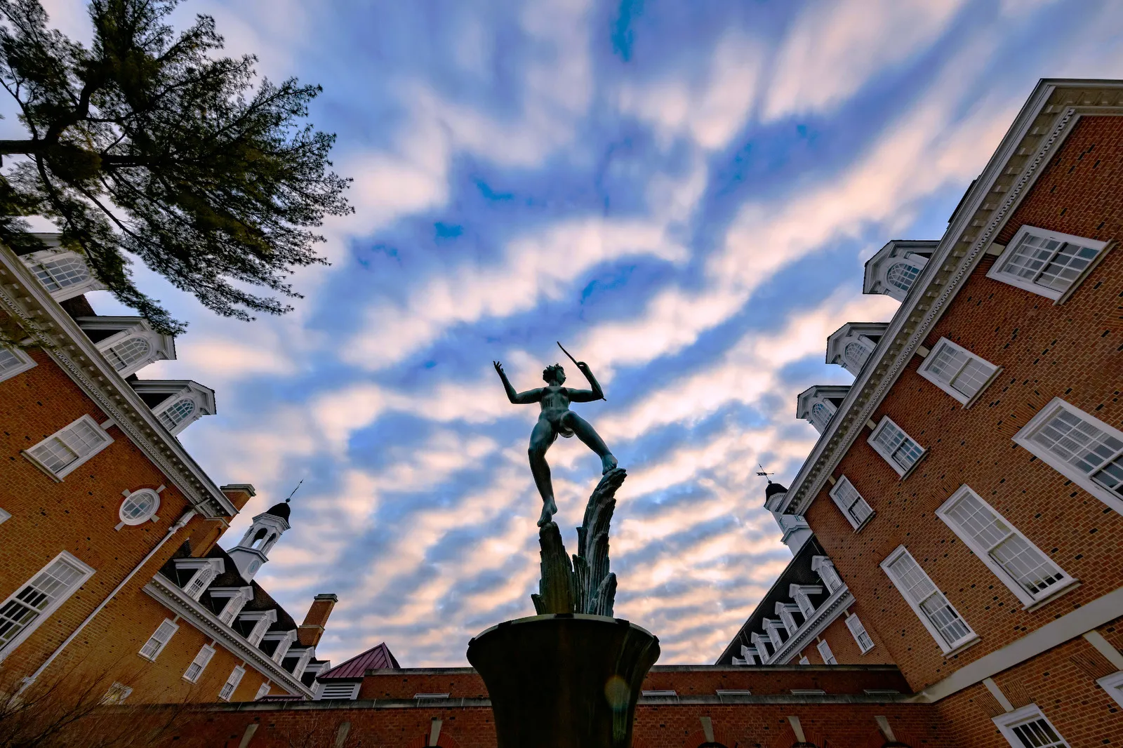 Dappled clouds create a dramatic skyline over the Diana Fountain as classes begin for the semester.