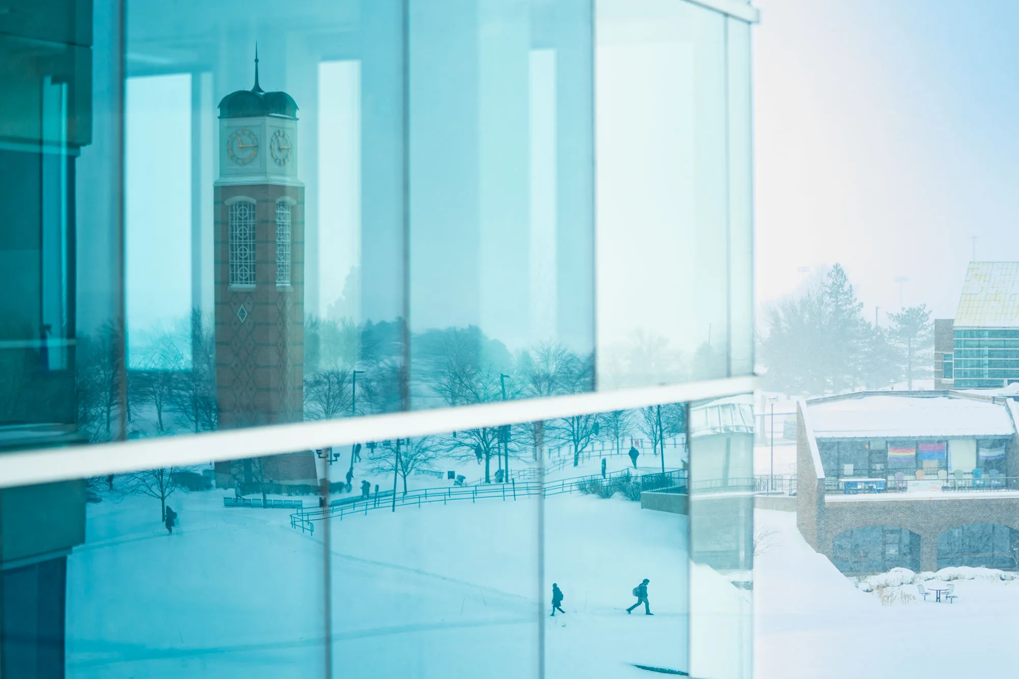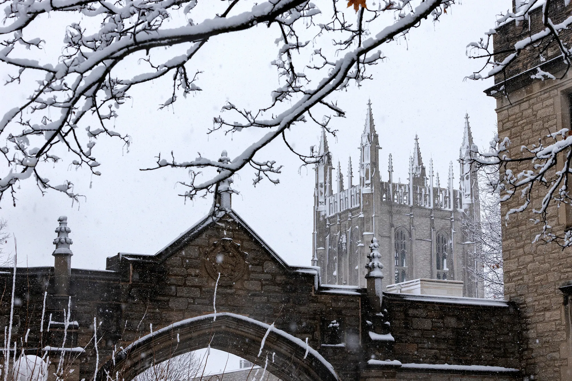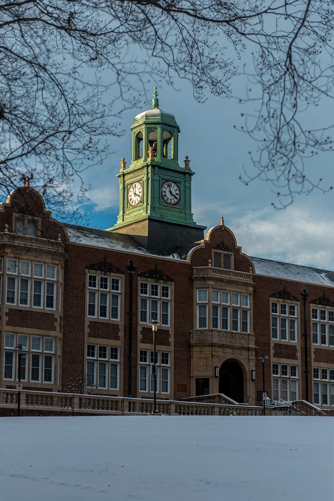 Our historic Stephens hall lawn coated with the first fresh snowfall of 2022.