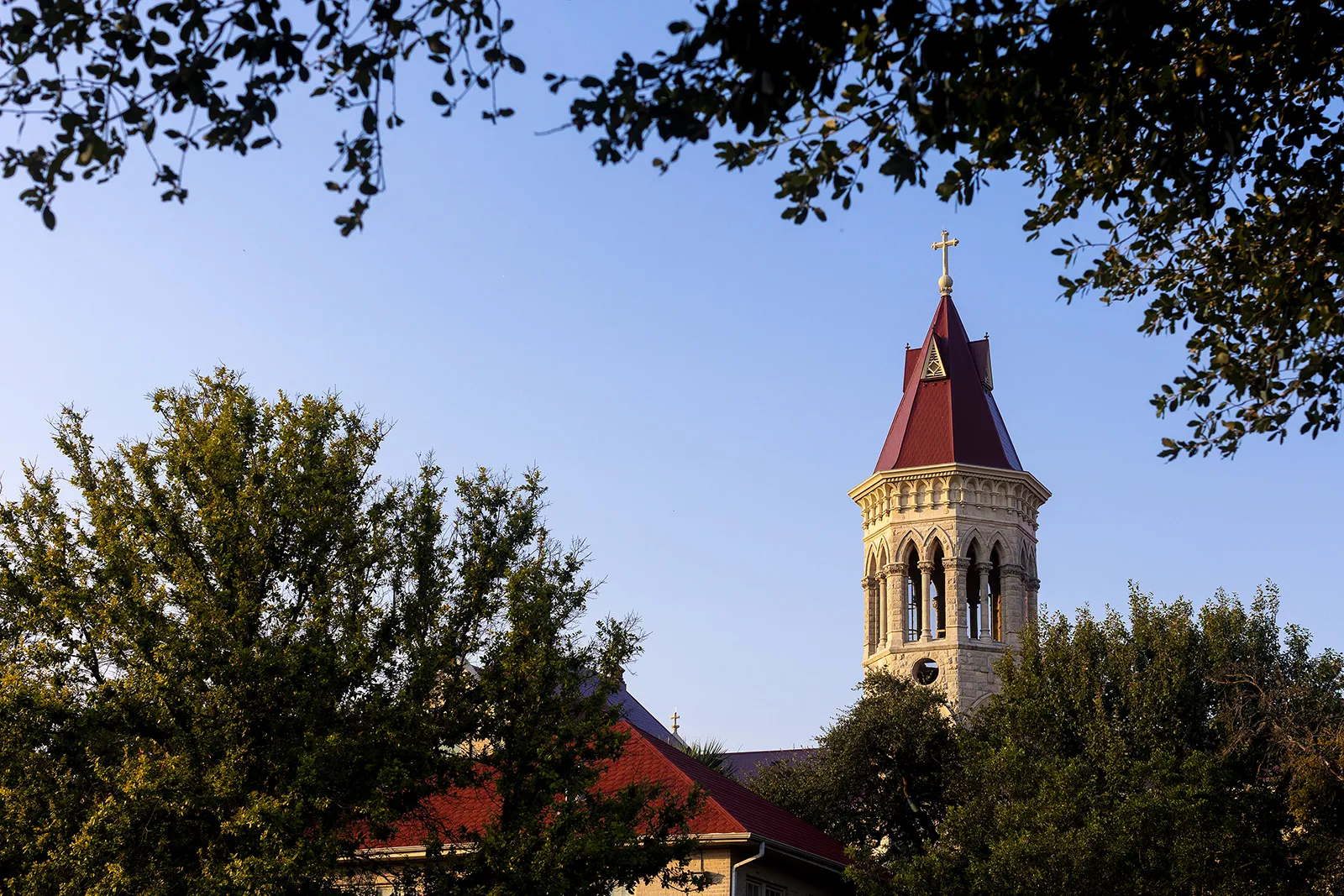 Main Building's steeple seen at golden hour in Austin, Texas, on Thursday, Sept. 9, 2021.